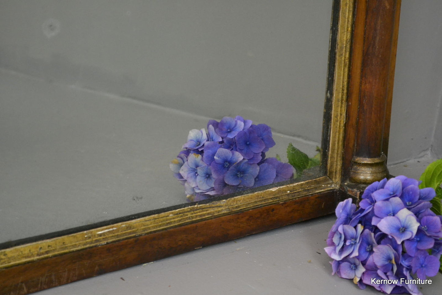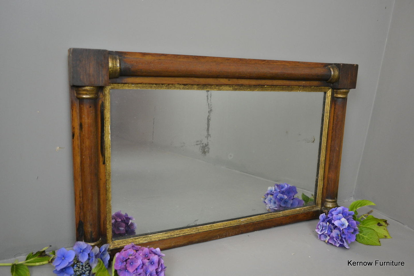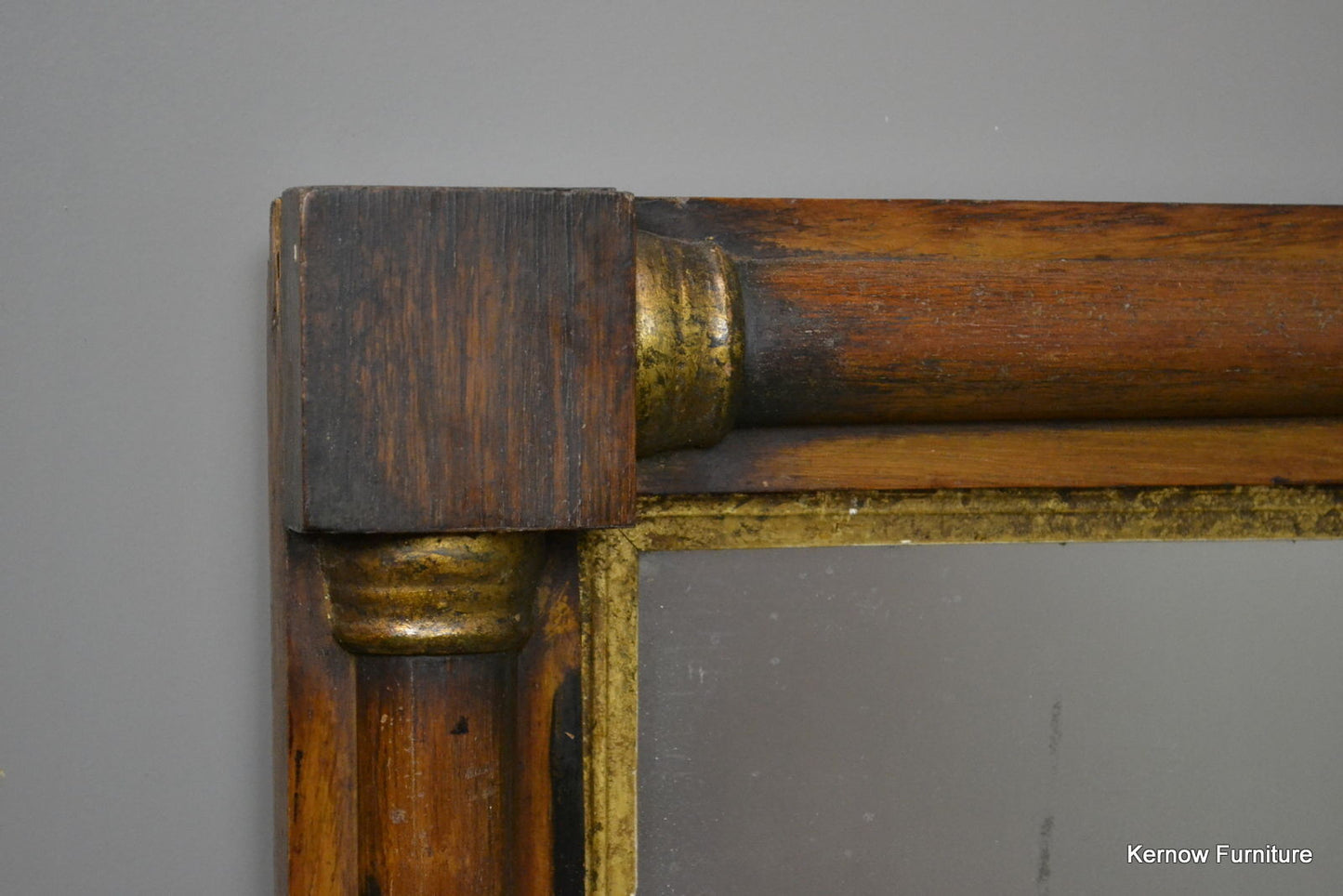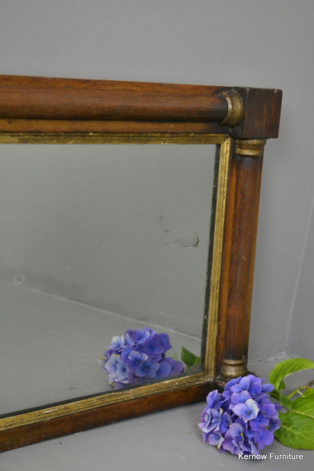 Early 19th Century overmantle mirror. Mahogany veneered half columns with gilt decoration.