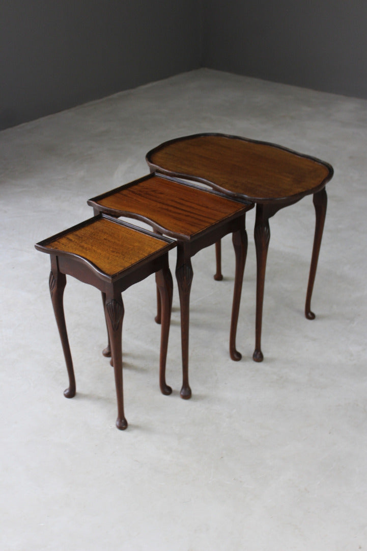 Reproduction nest tables. Antique style 20th Century nest of three side tables.