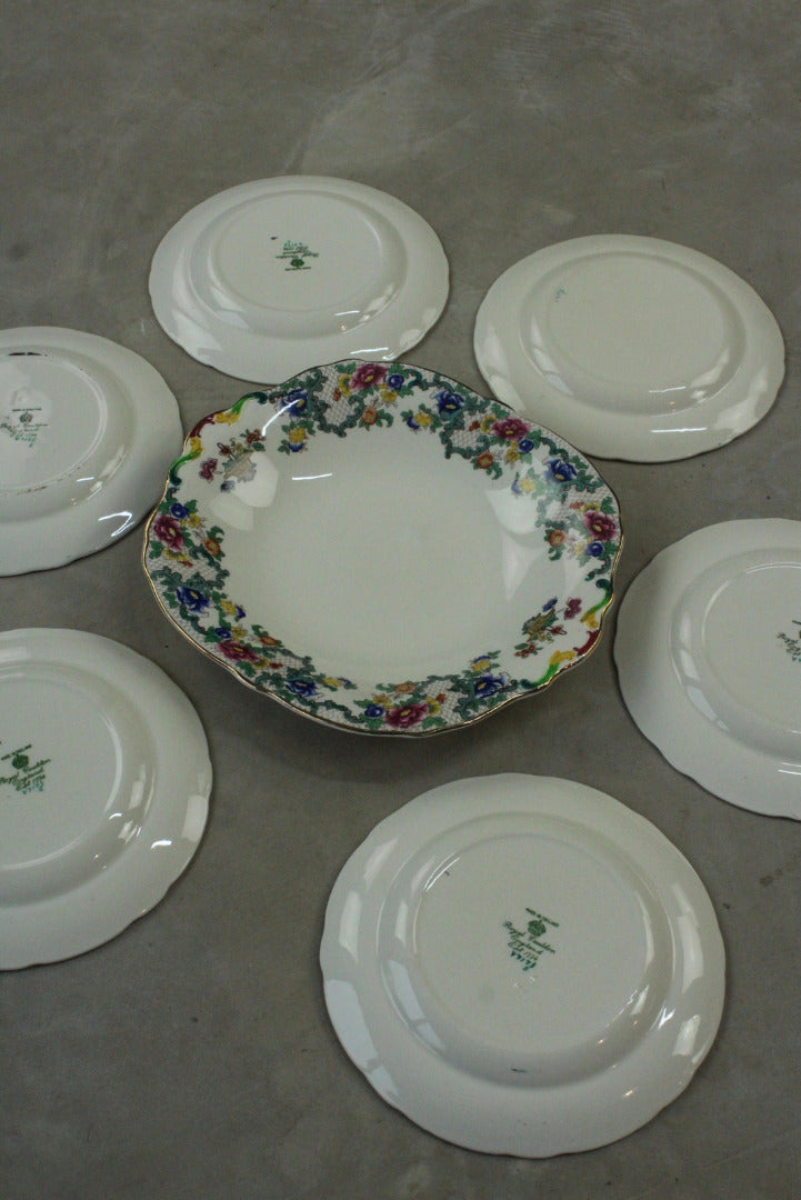 Royal Cauldon Dessert Set. Large Shallow shaped bowl and 6 small bowls.