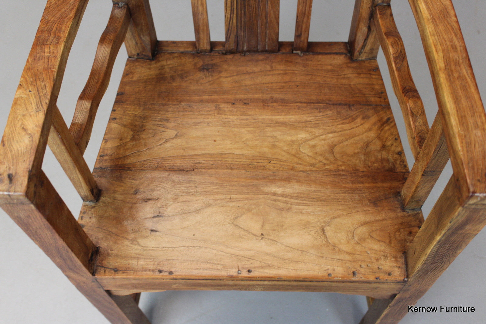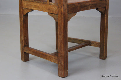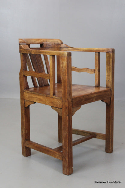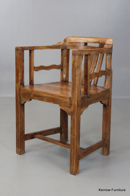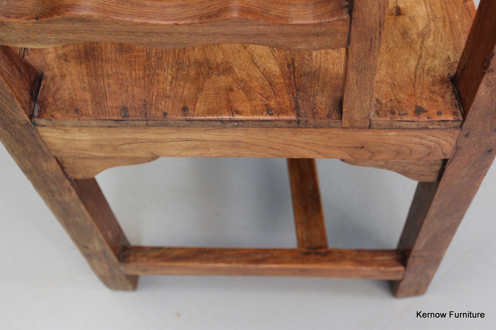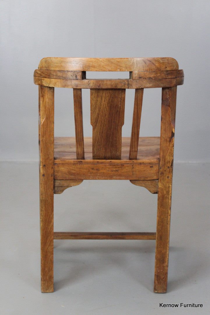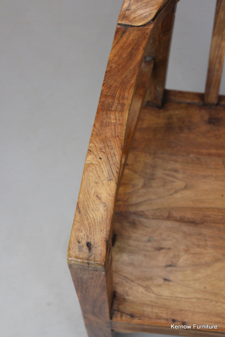 Rustic cherry chair. Mid 20th Century solid cherry wood chair, solid board seat with shaped back rest on square section legs. Perfect for a study chair.