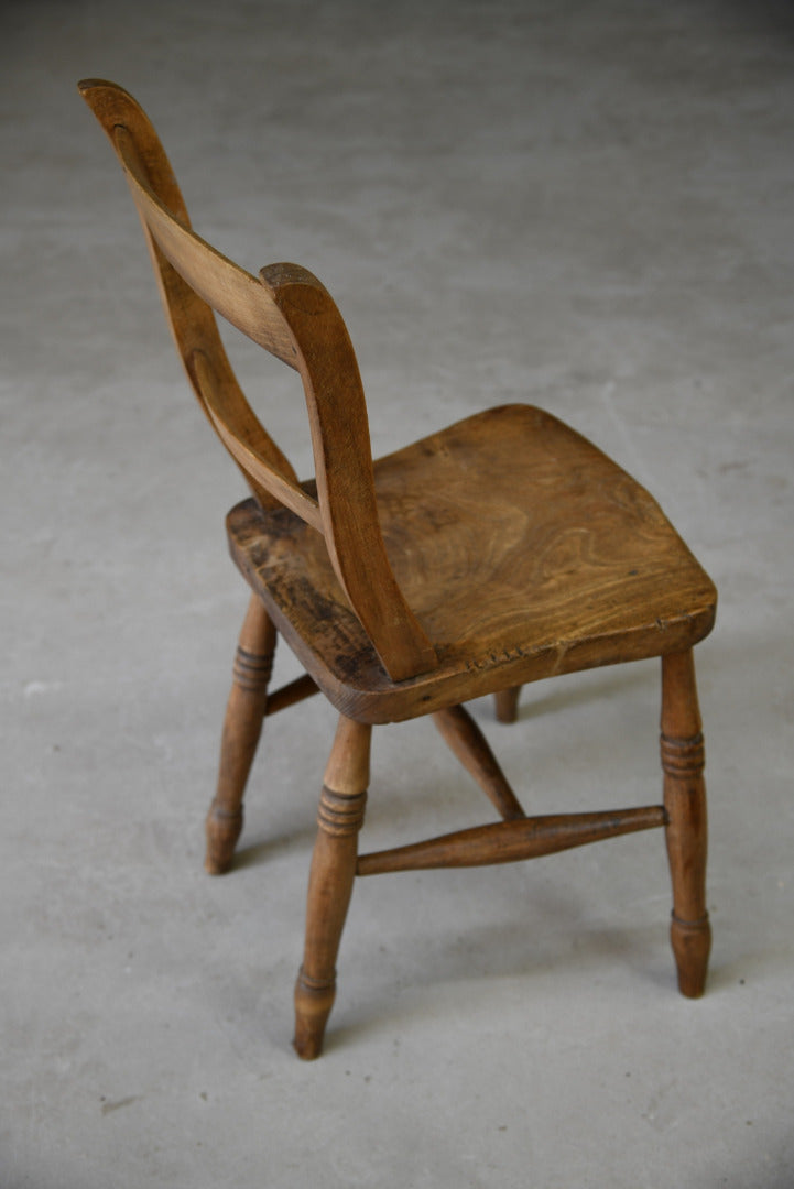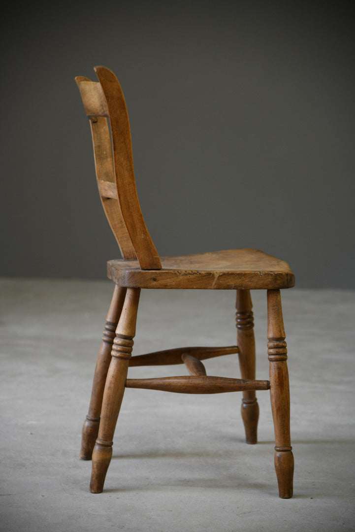 Rustic elm kitchen chair. Single rustic solid elm kitchen chair with rail back, shaped seat and splayed turned legs.