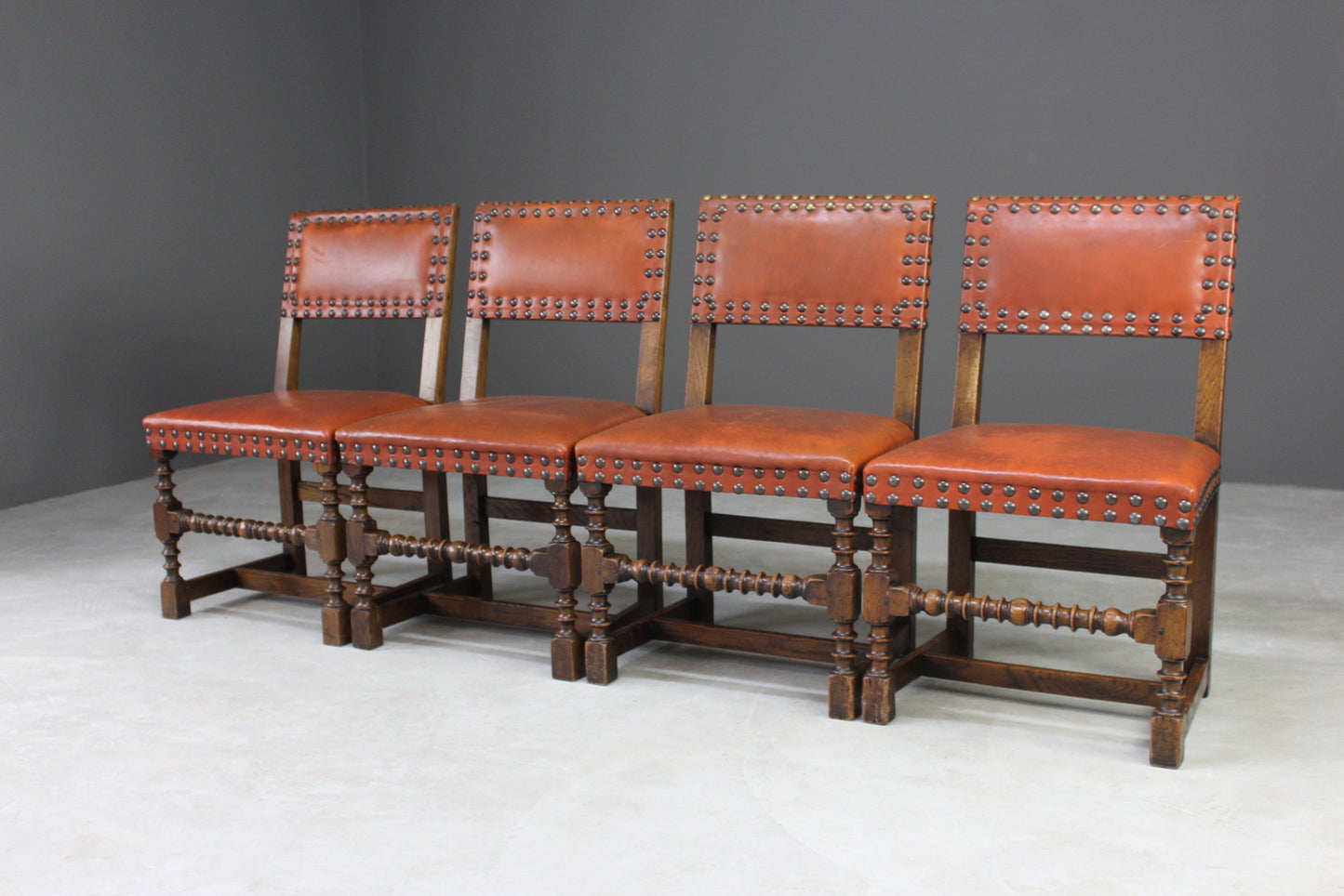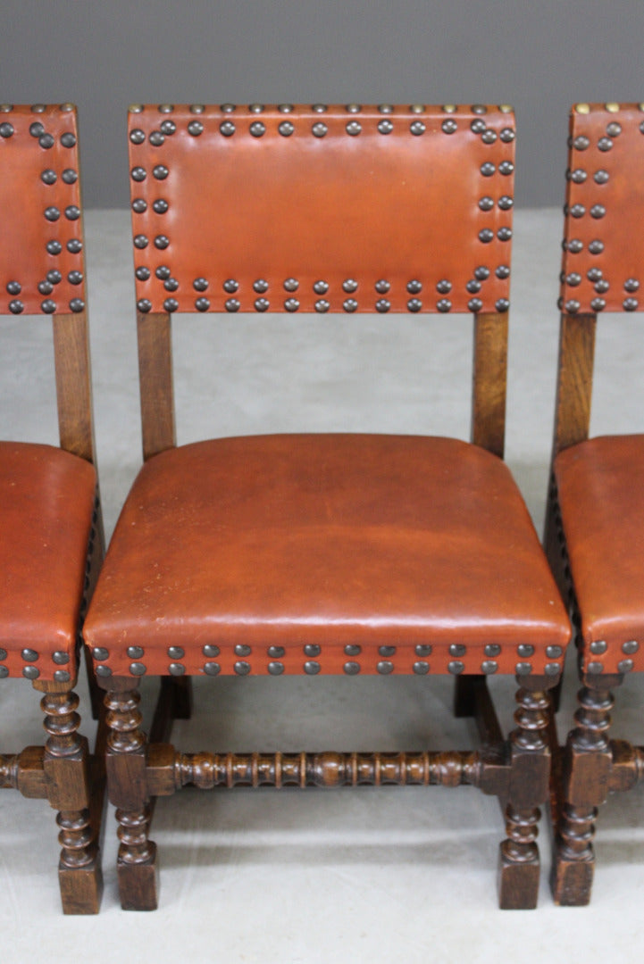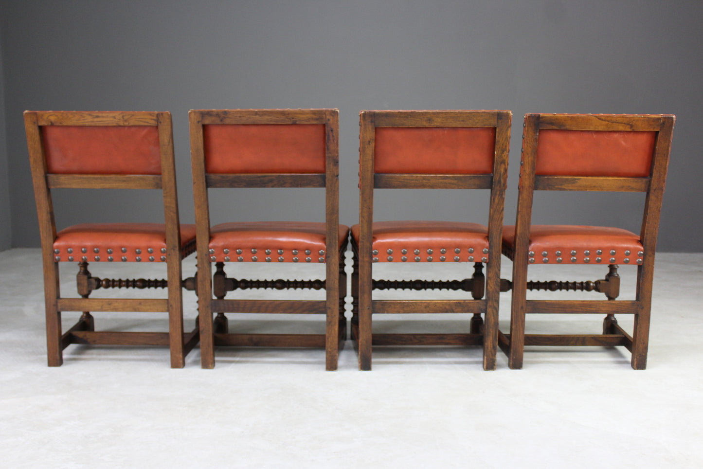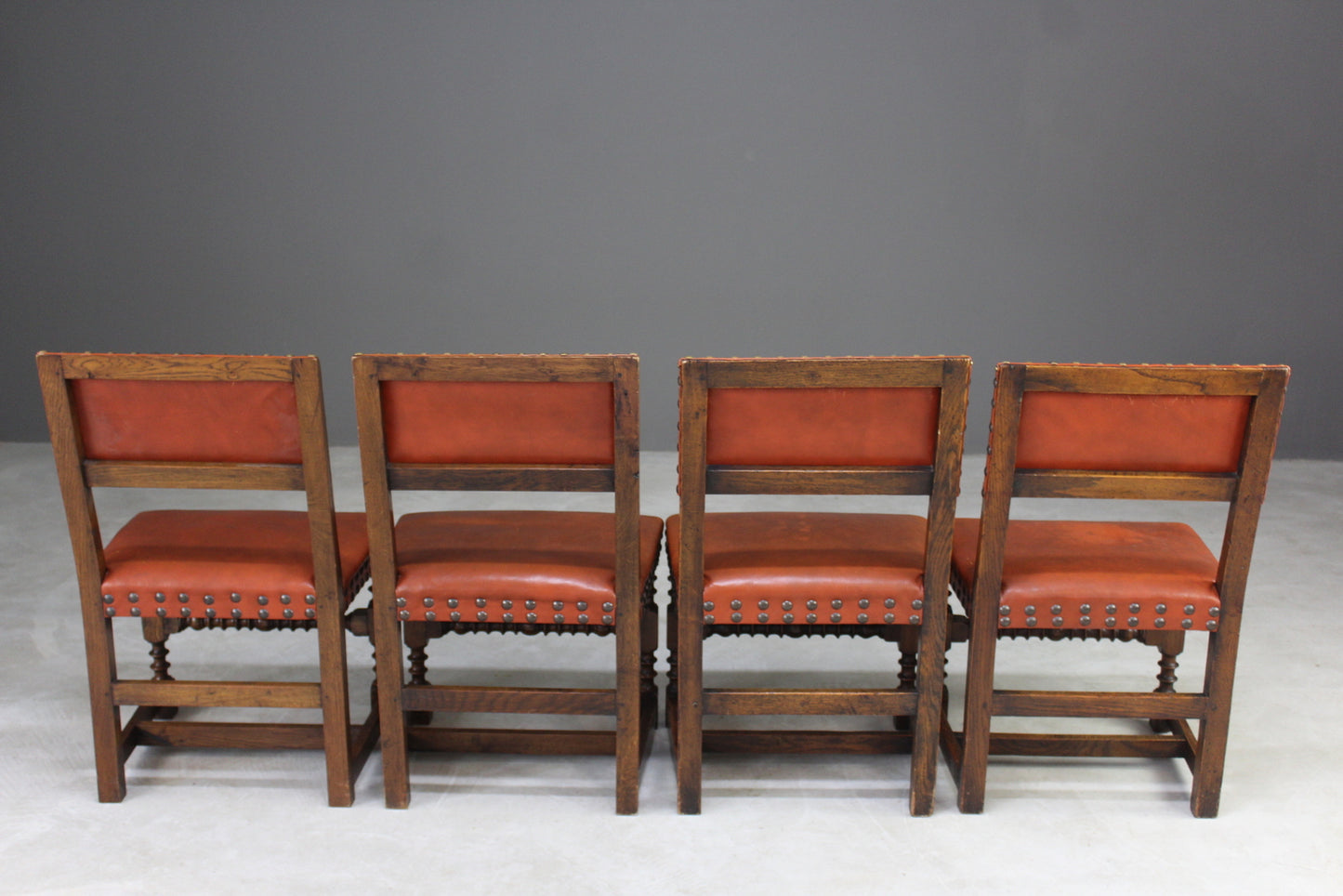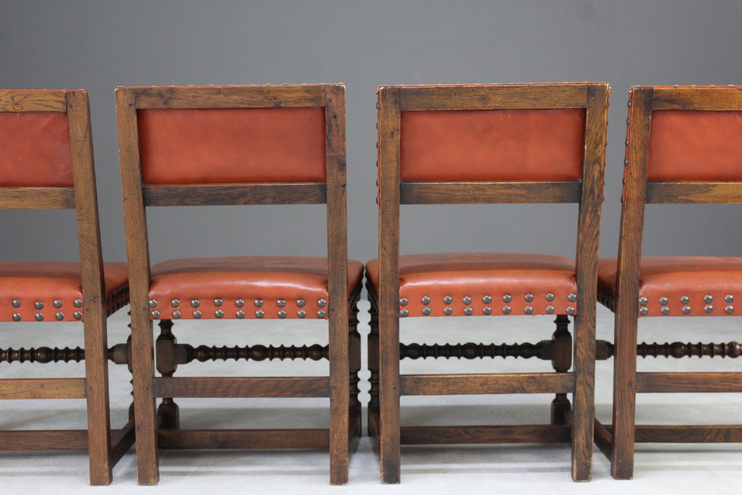 Set 4 Cromwellian design dining chairs. 4 Early 20th Century Cromwellian design dining chairs, Upholstered in orange/copper vinyl with large upholstery studs on turned & block legs.