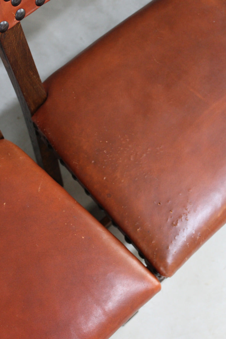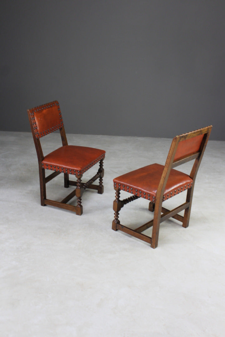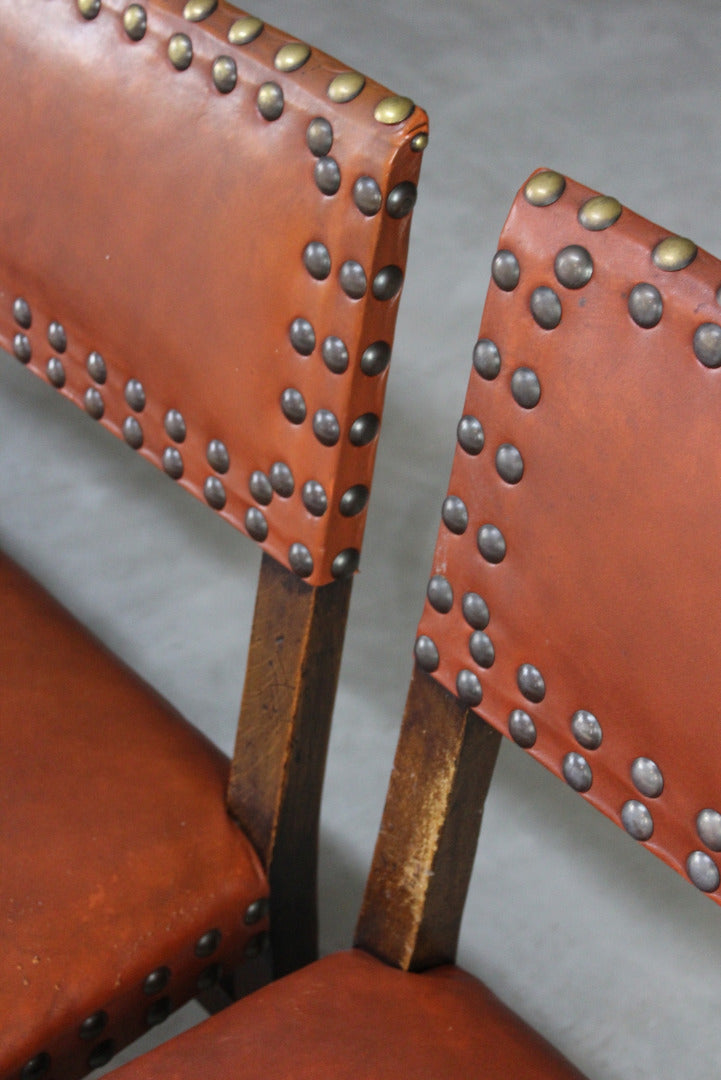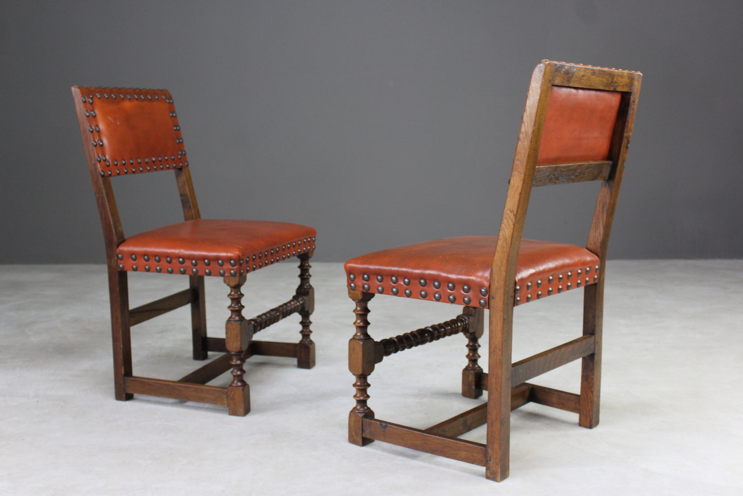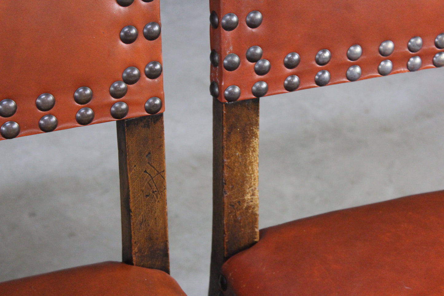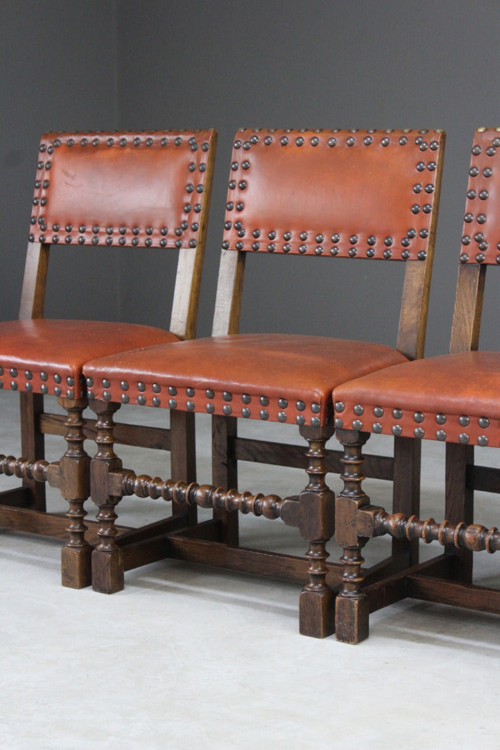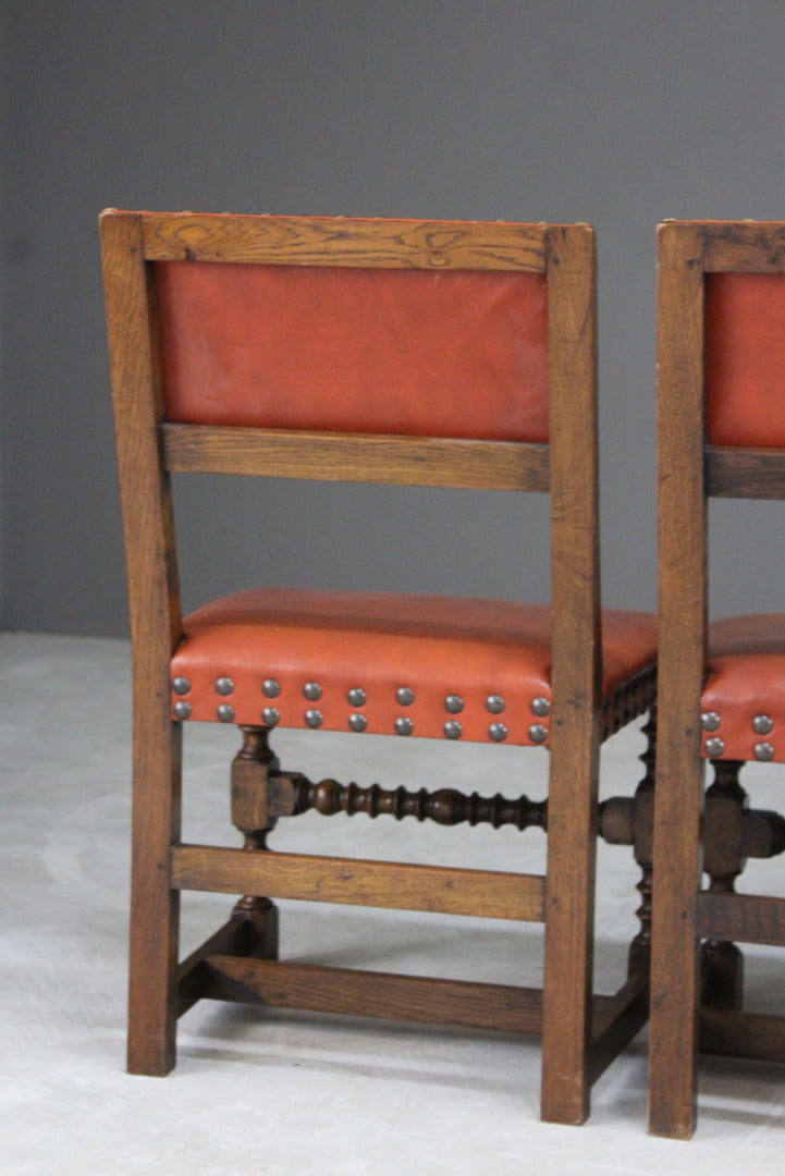 Set 4 Cromwellian design dining chairs. 4 Early 20th Century Cromwellian design dining chairs, Upholstered in orange/copper vinyl with large upholstery studs on turned & block legs.