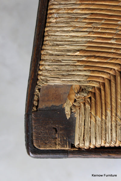 Condition: Solid, age and general wear, some damage and losses to the rush, a few historic repairs to the wooden frames - please refer to the photos.