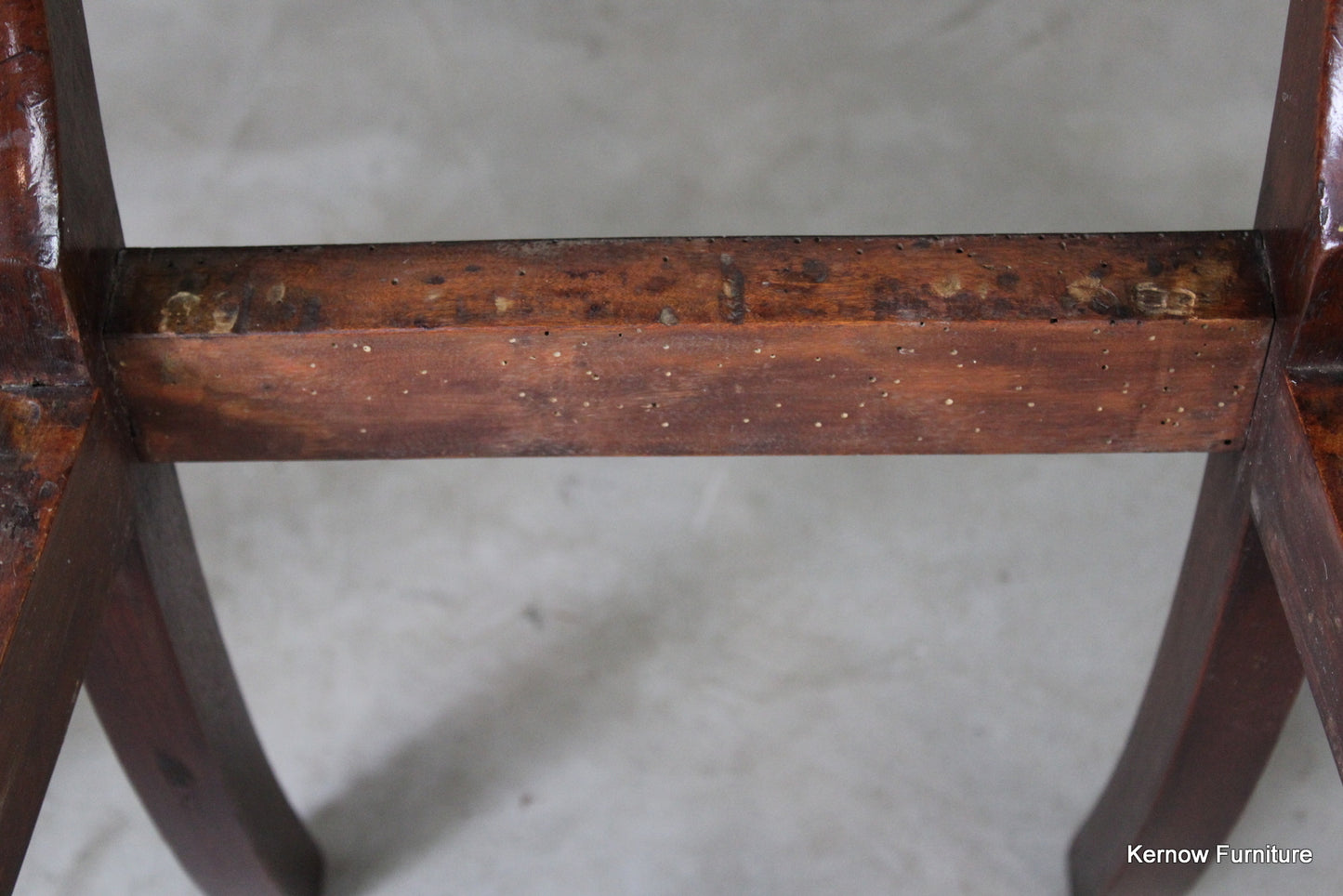 Condition: Some age and general wear, the fabric is marked, some old woodworm to the frame underneat the seat pad, this has been treated as a precaution.