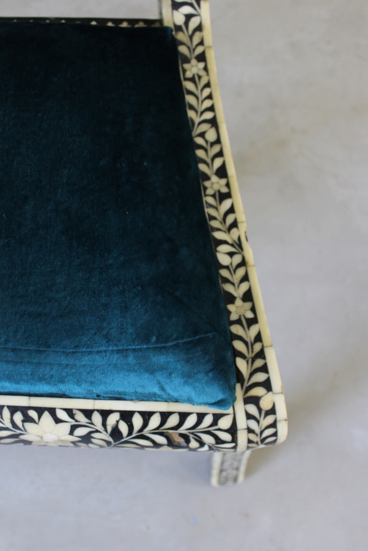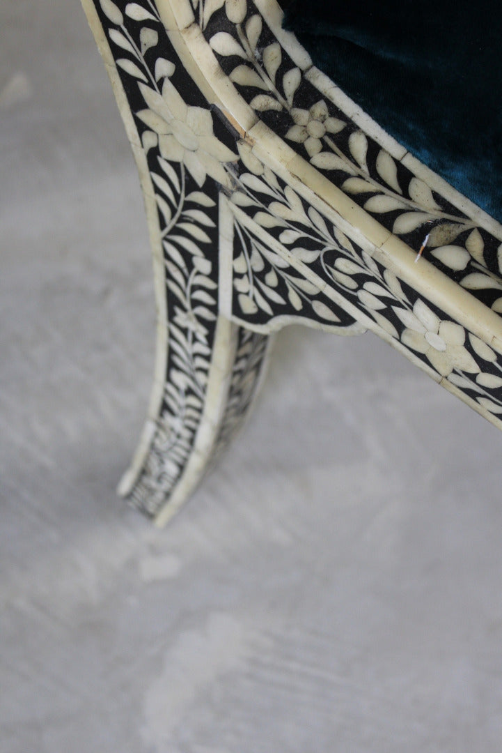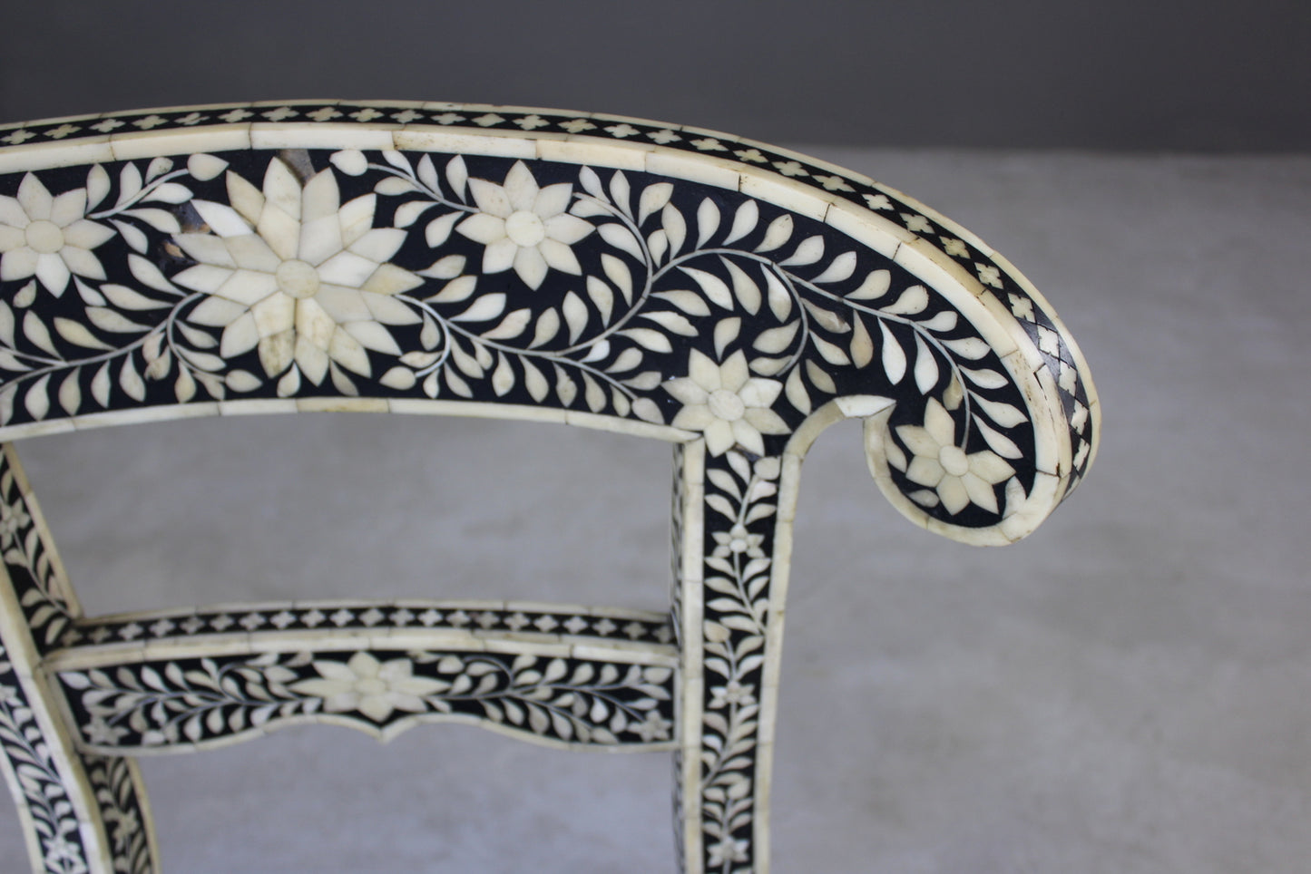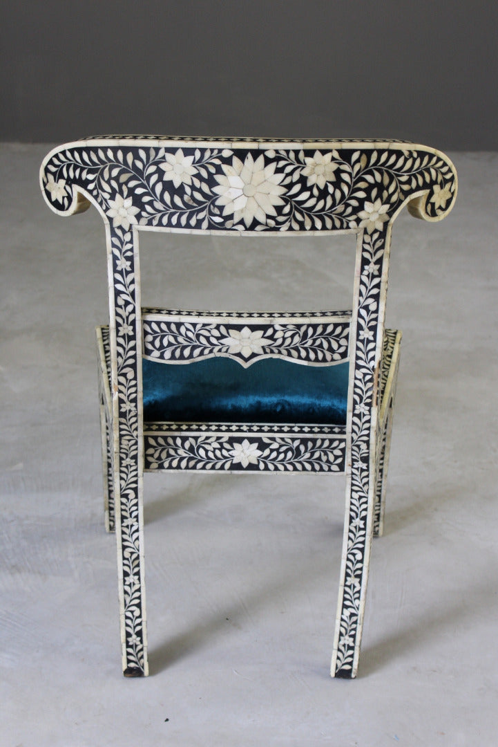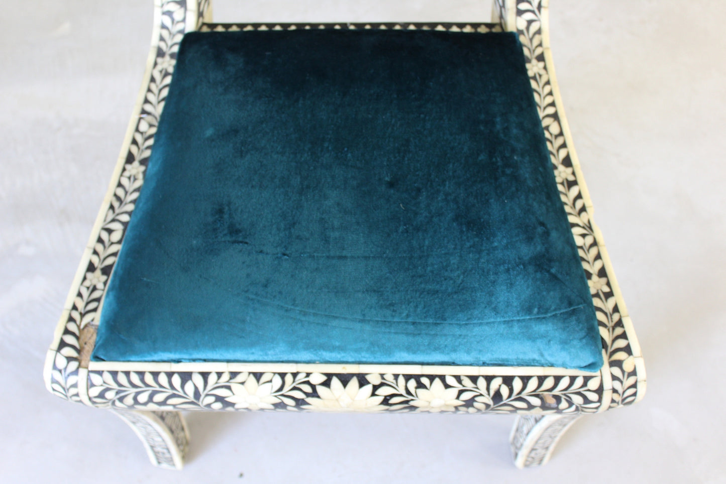 Single Anglo Indian bone inlay chair. Stunning Indian chair with upholstered seat pad & intricately inlaid bone & ebonised frame.