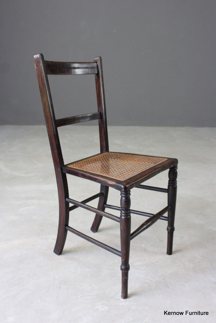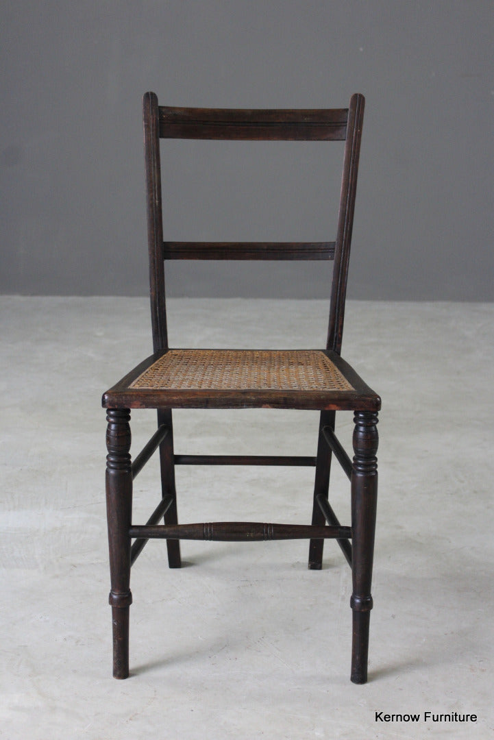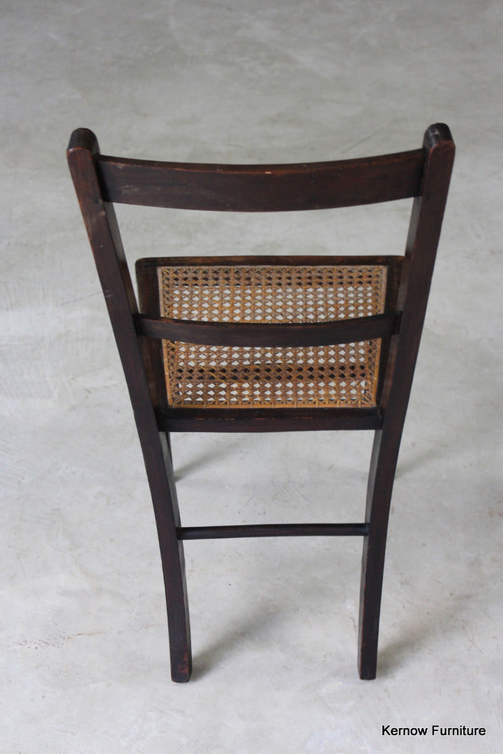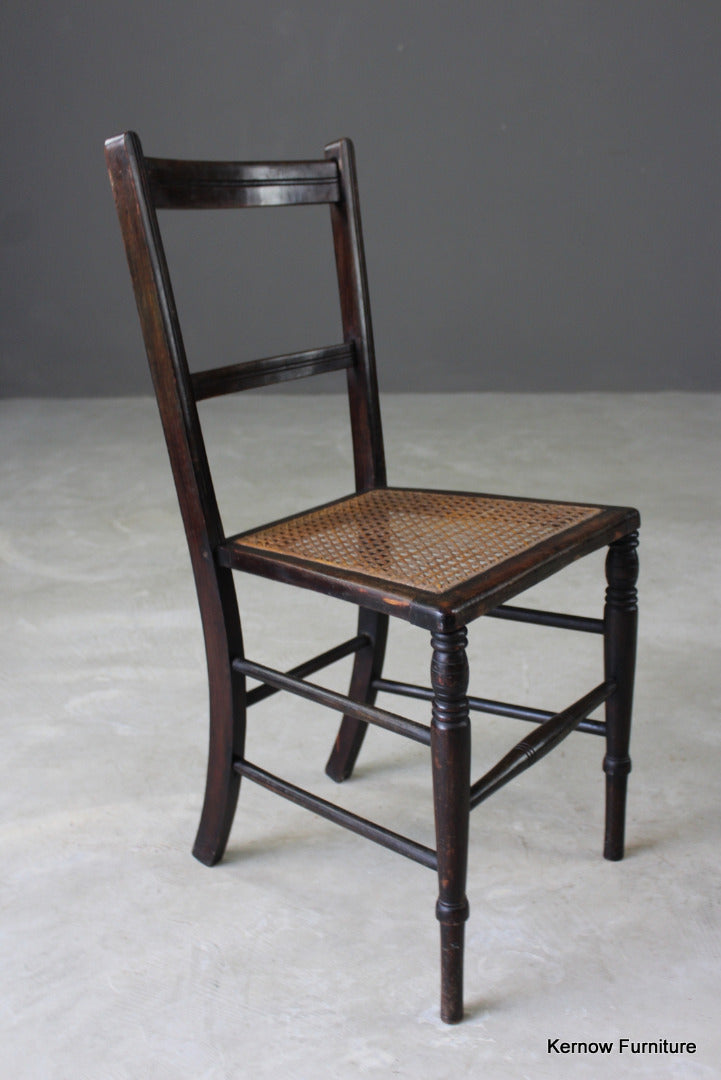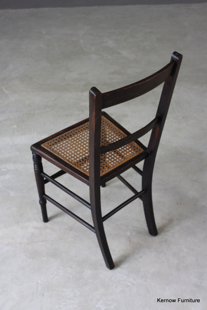 Single cane occasional chair. Early 20th Century small stained beech side chair with canned seat on slender turned legs.