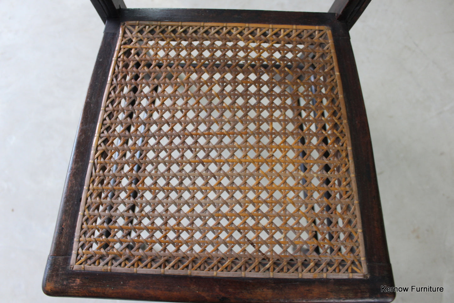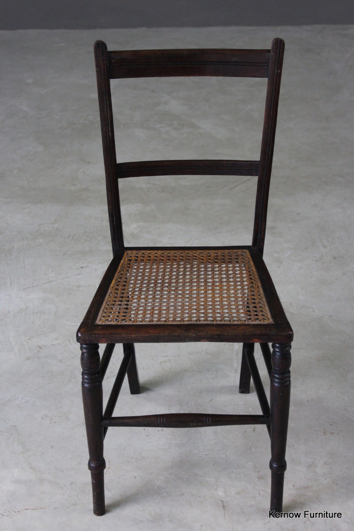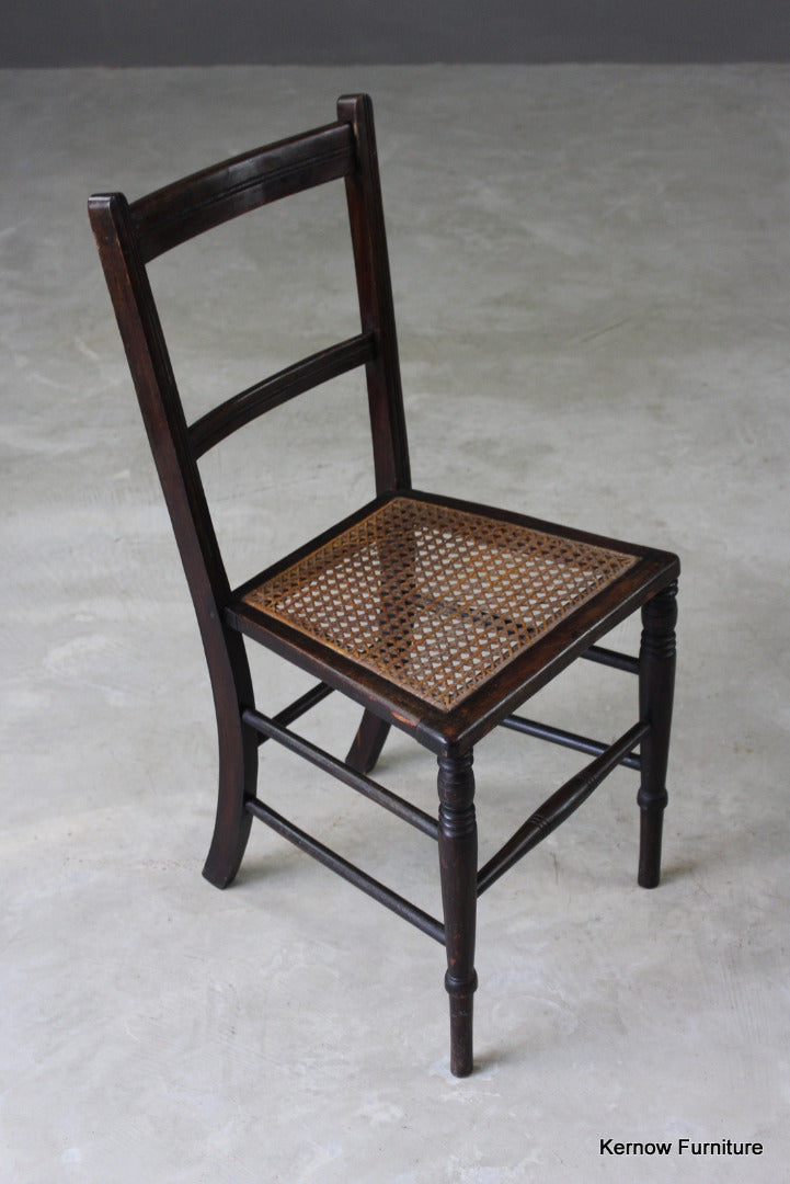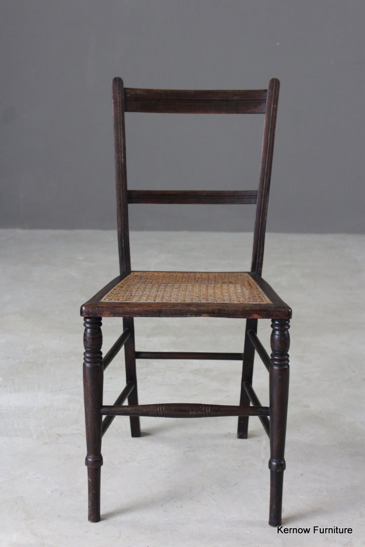 Single cane occasional chair. Early 20th Century small stained beech side chair with canned seat on slender turned legs.