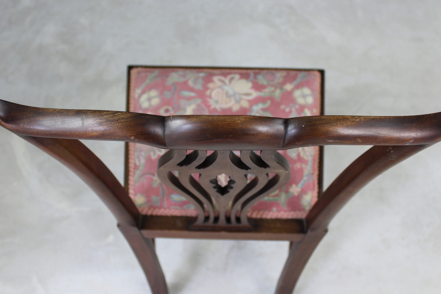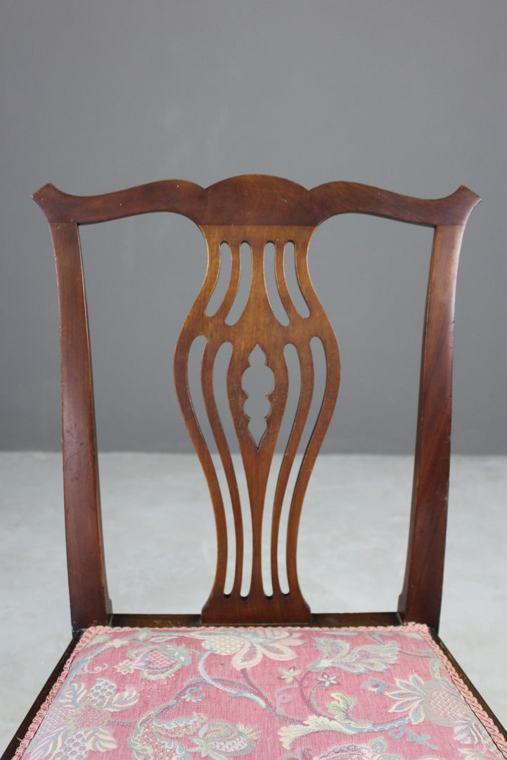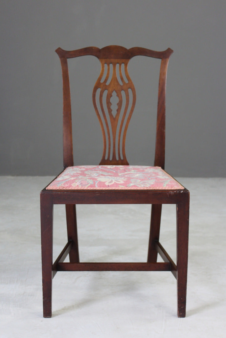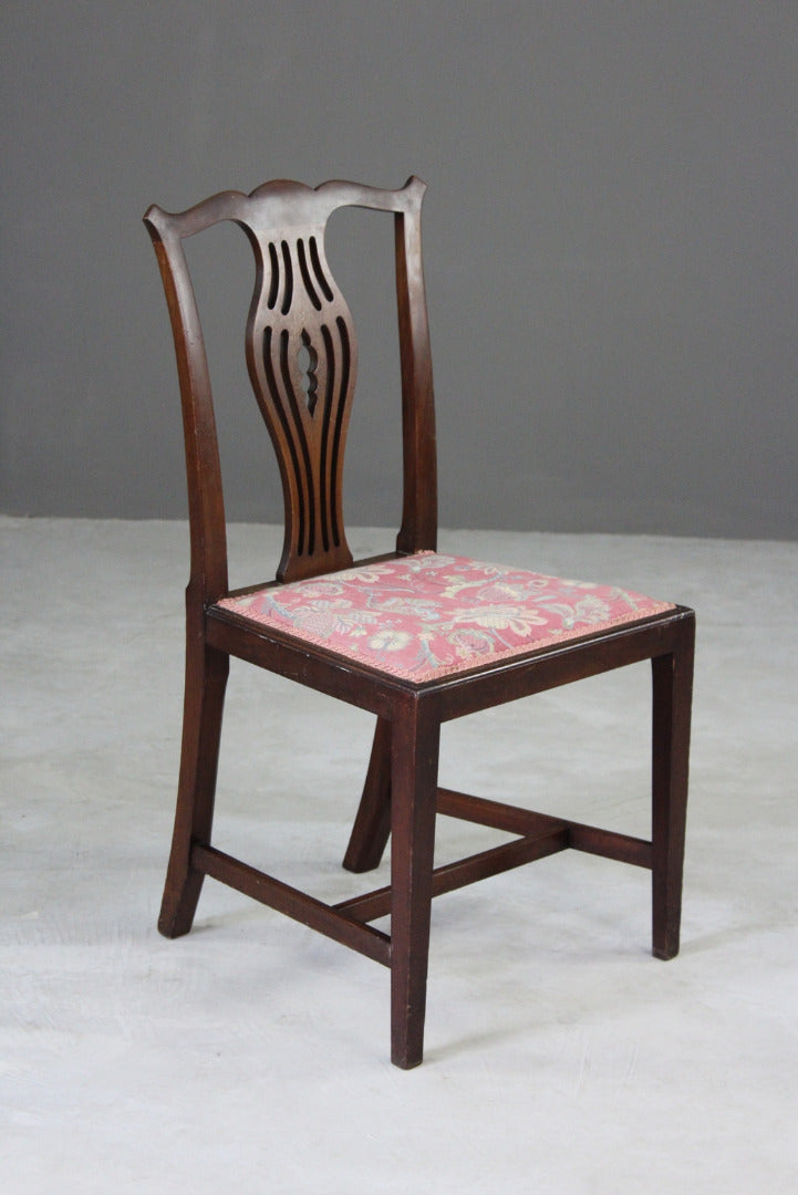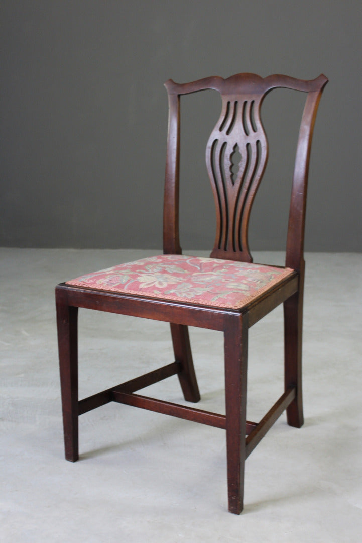 Single Georgian style dining chair. Single mahogany Georgian style dining chair with pierced back splat and floral upholstered seat on tapering square legs.