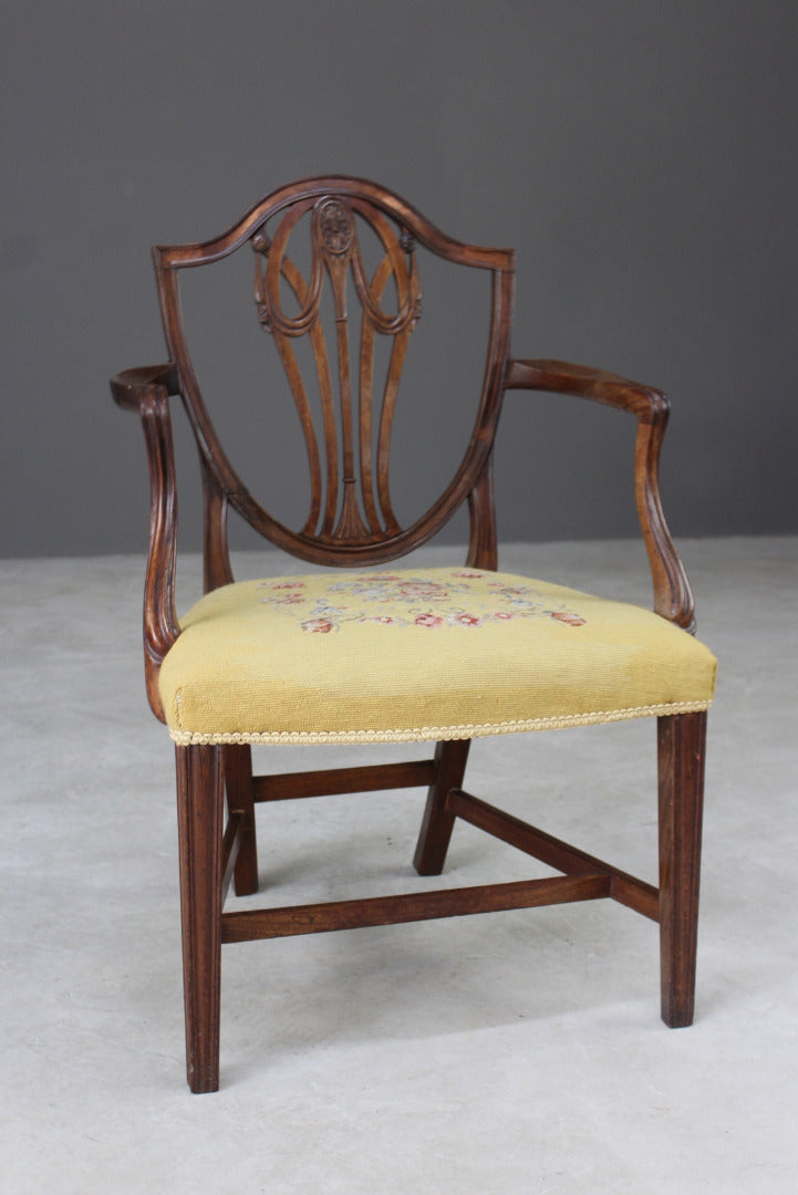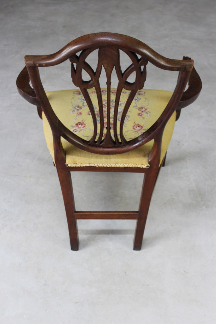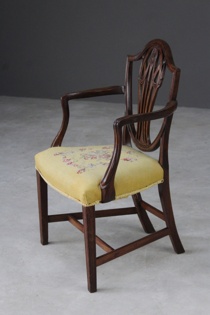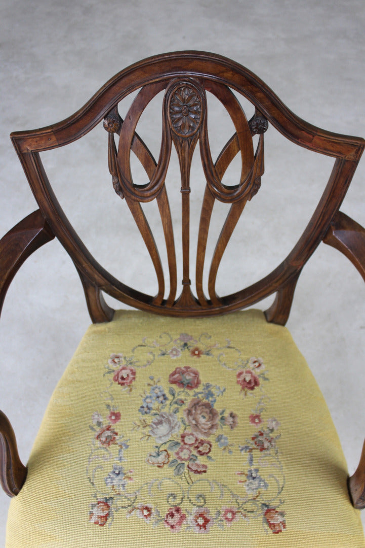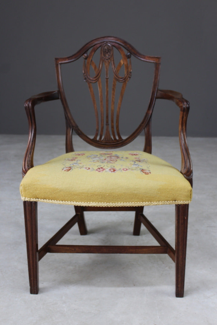 Single Hepplewhite style carver chair. Single 19th Century Hepplewhite style mahogany carver chair, floral tapestry seat.