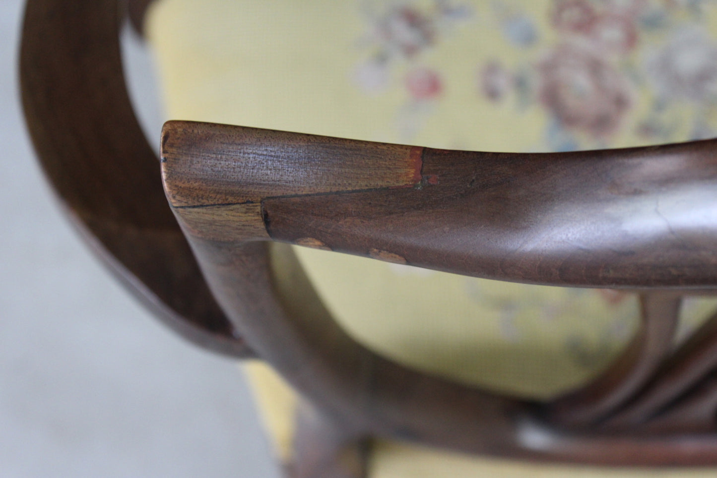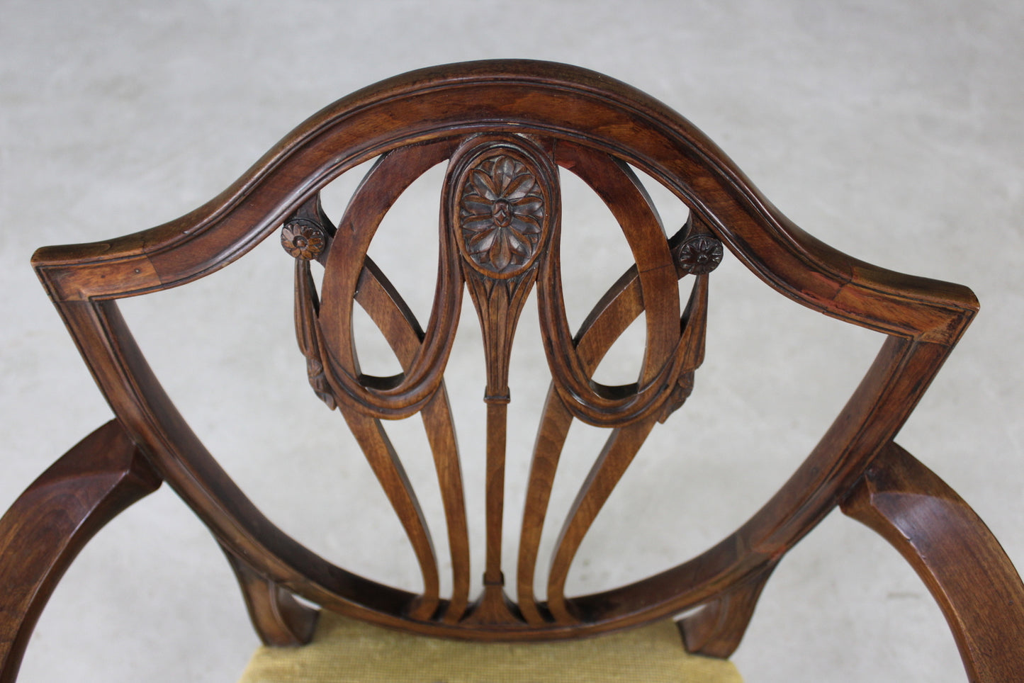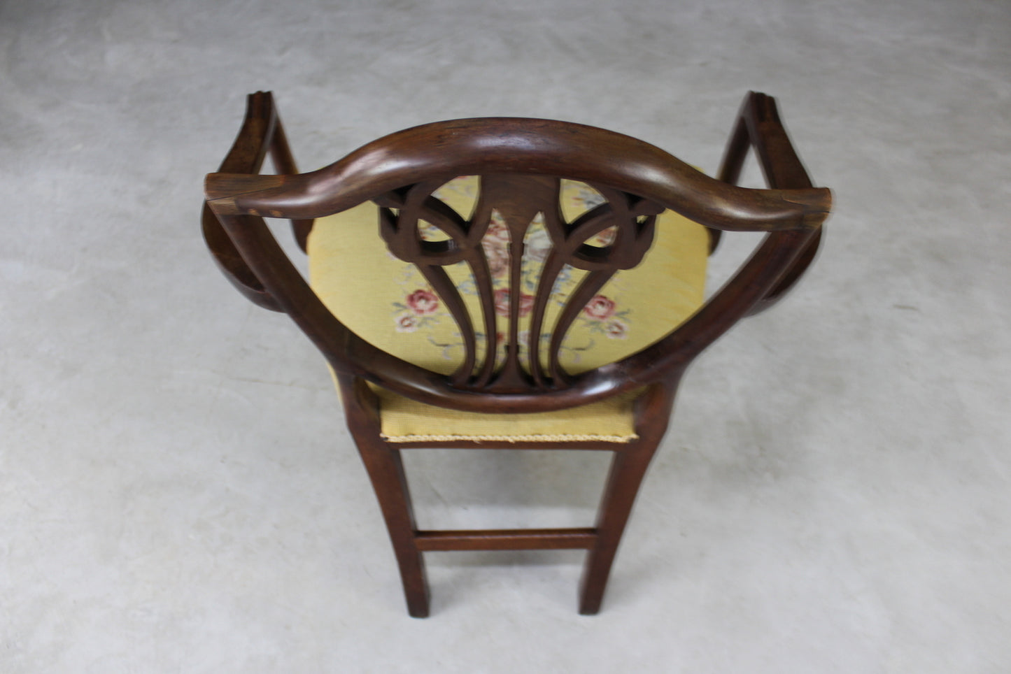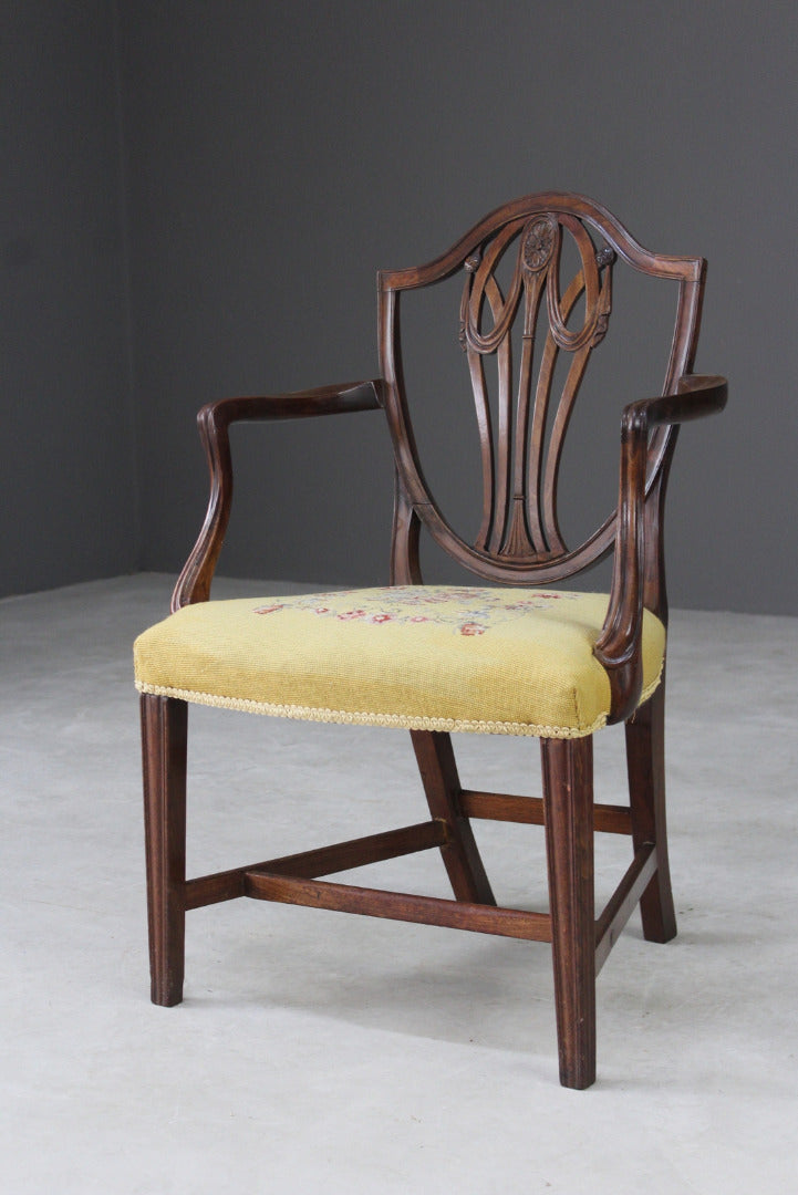 Single Hepplewhite style carver chair. Single 19th Century Hepplewhite style mahogany carver chair, floral tapestry seat.