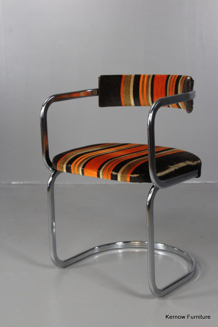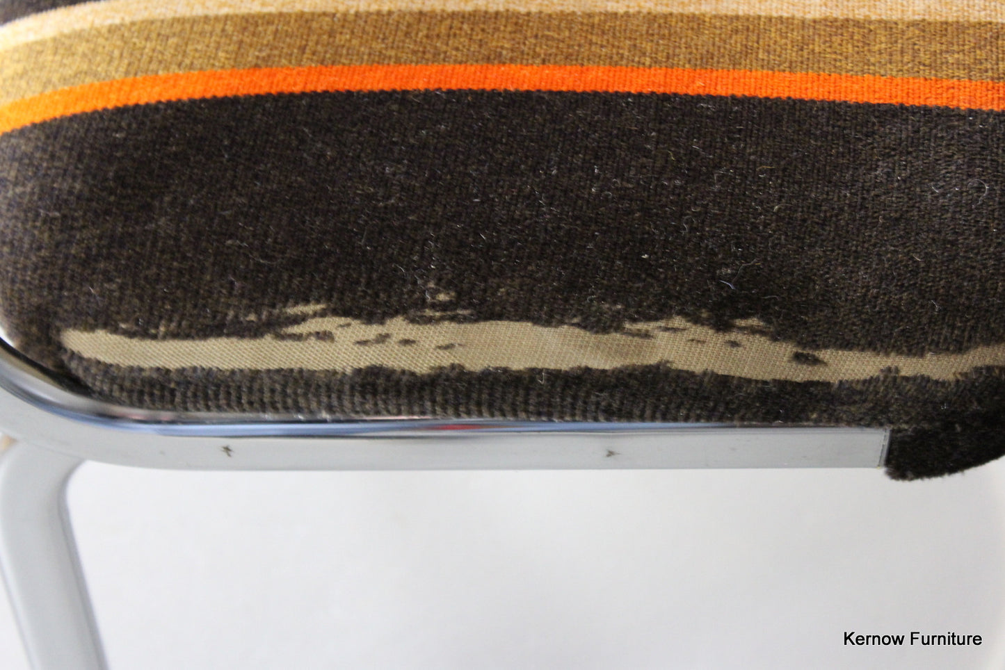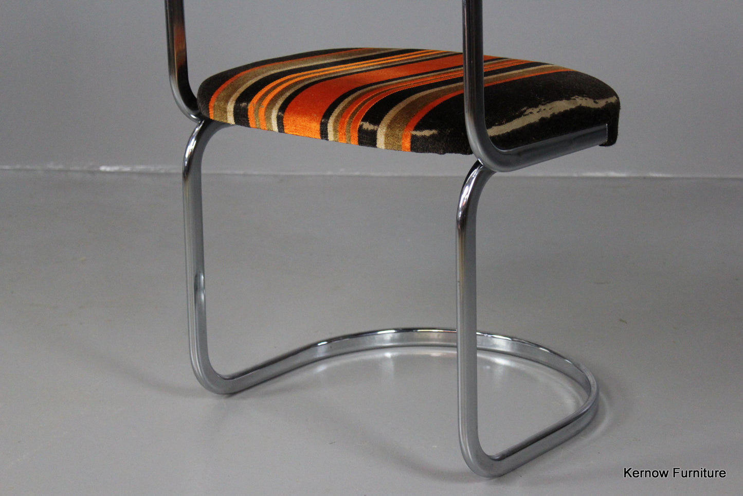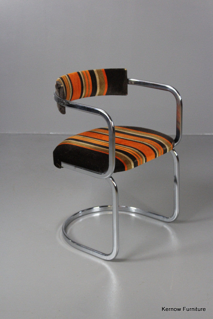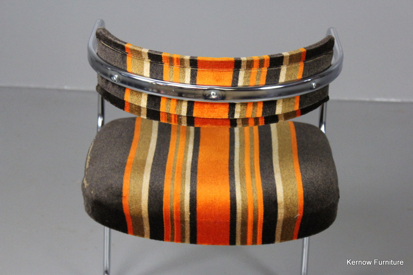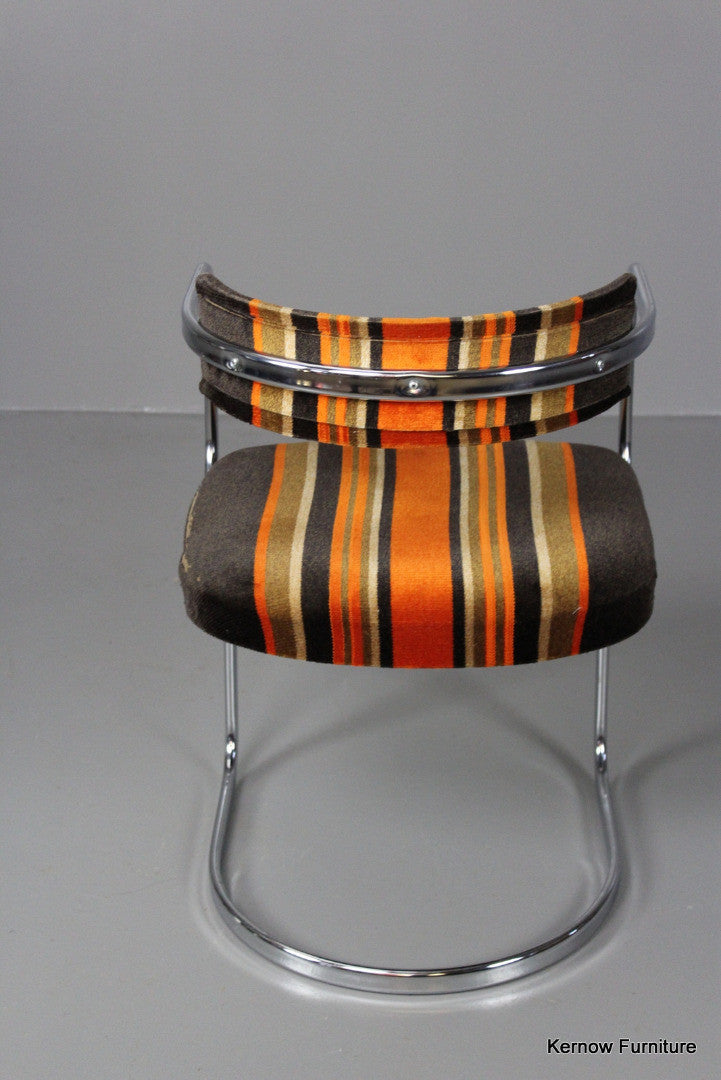 Single retro 1970s dining chair, chrome cantilever frame with original upholstered seat and curved back rest.