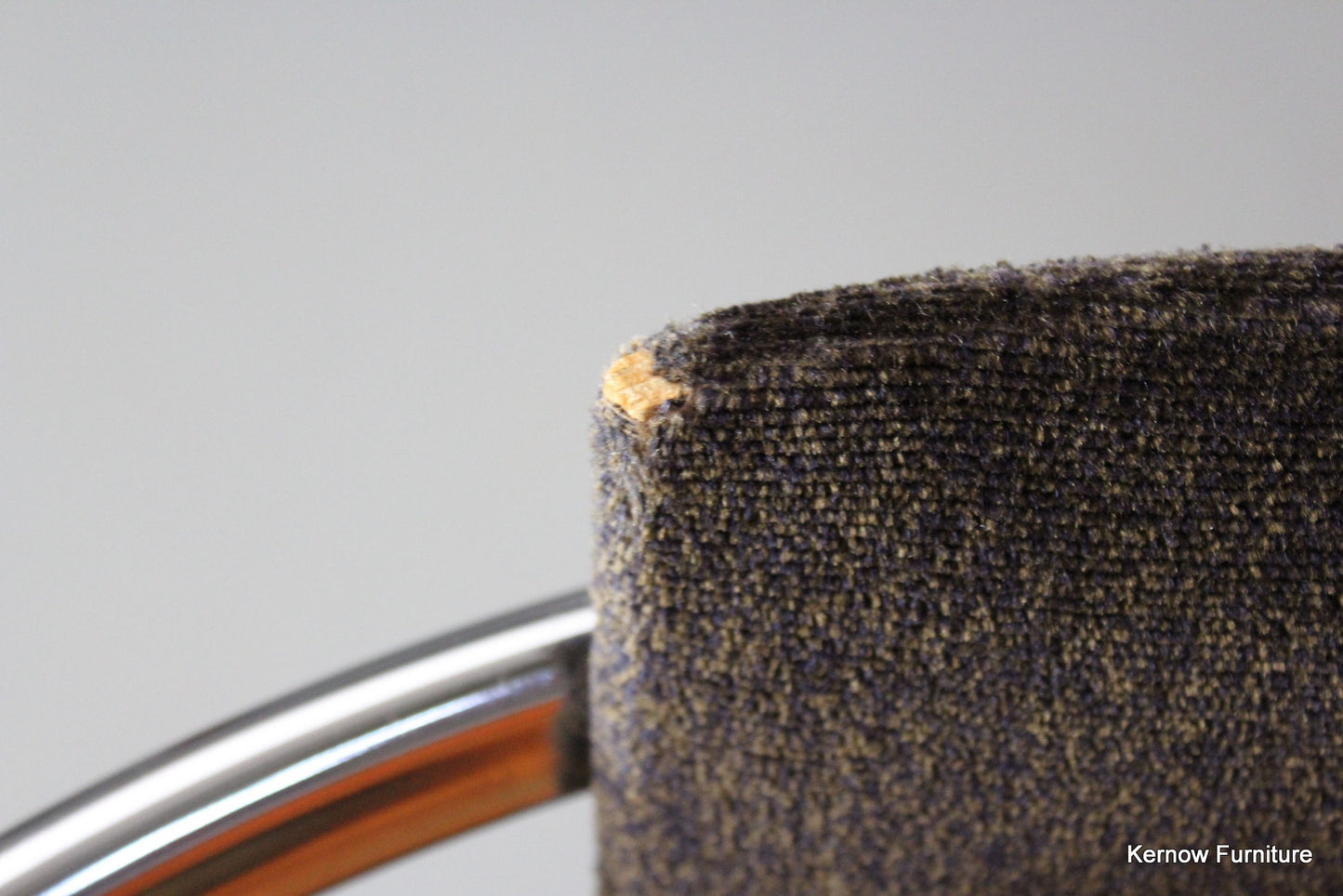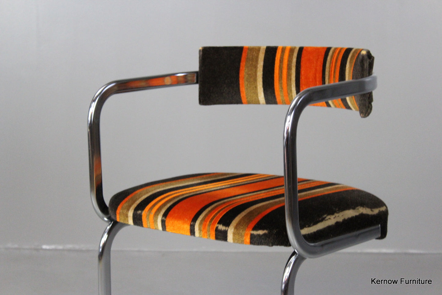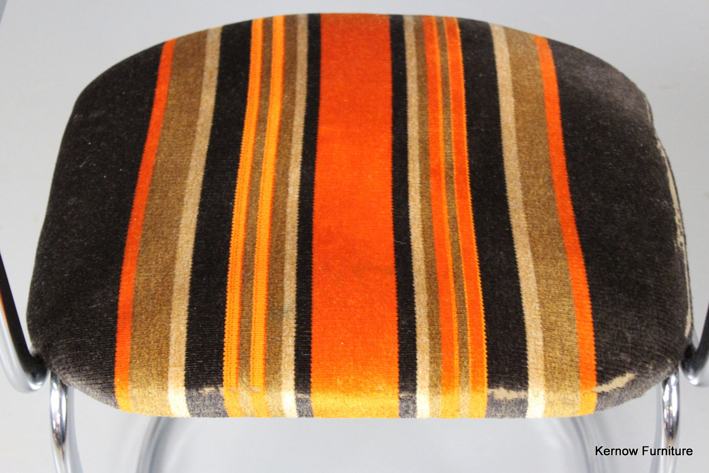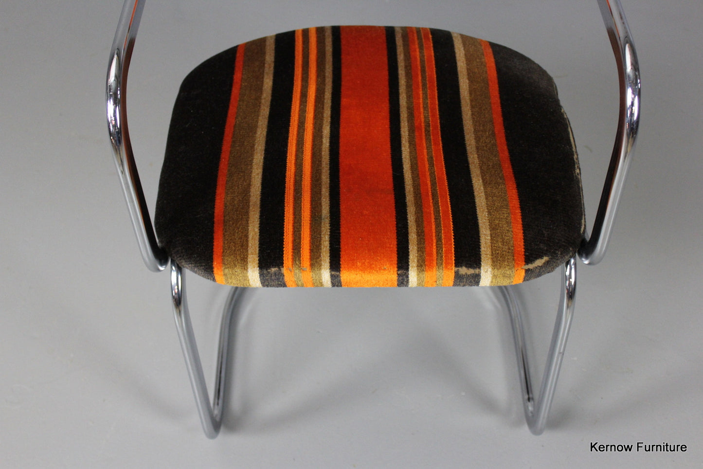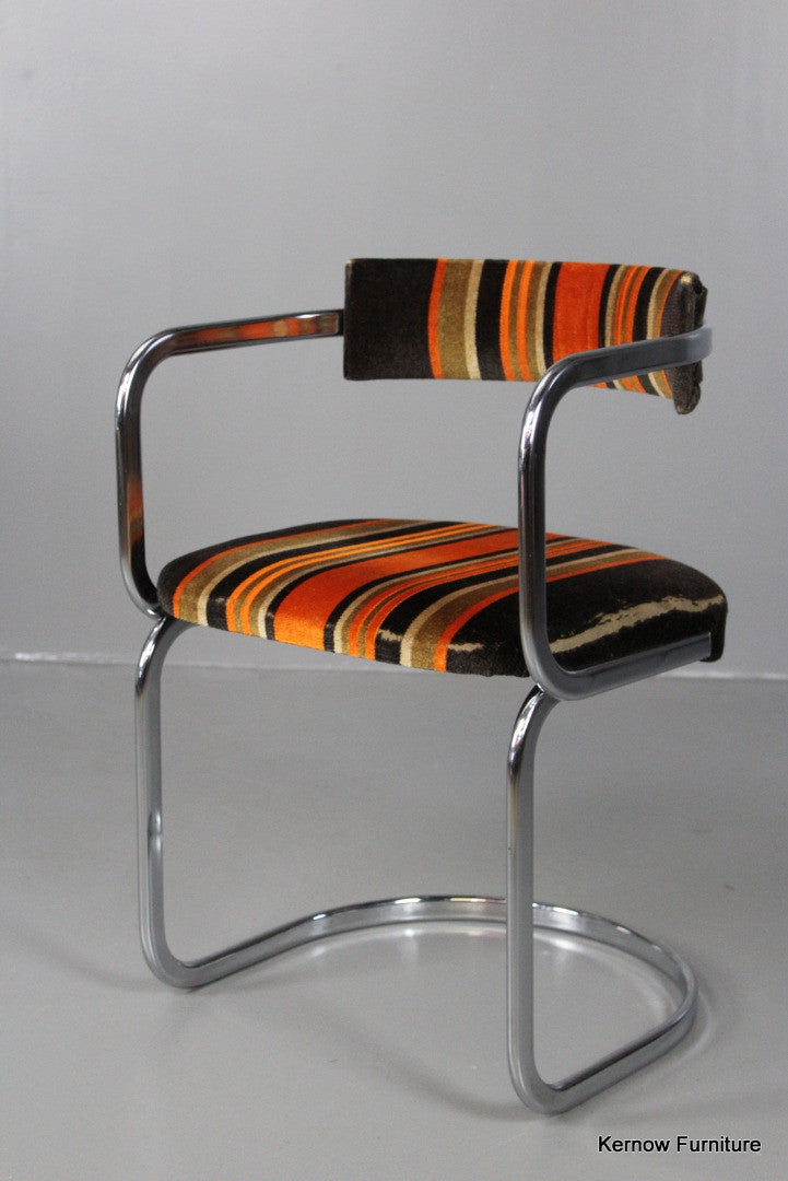 Single retro 1970s dining chair, chrome cantilever frame with original upholstered seat and curved back rest.