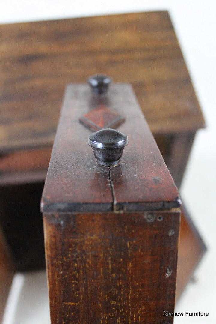 Small arts & crafts mahogany cabinet. Wall mount or table top small wooden cbainet with pair of doors and single shallow drawer.