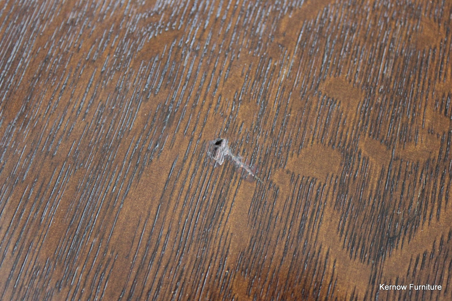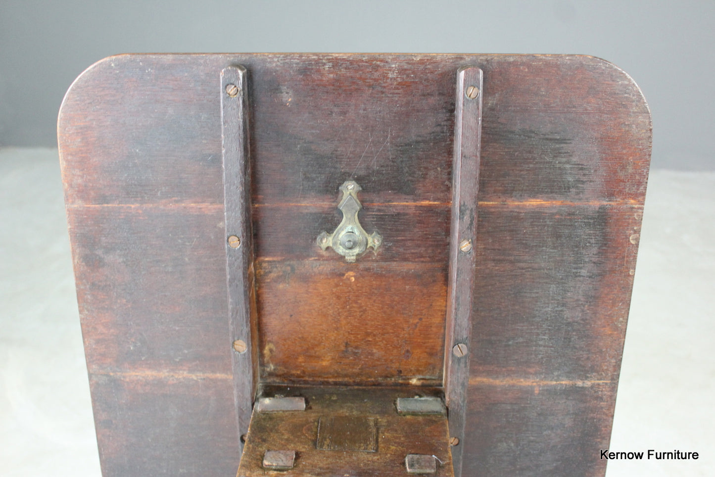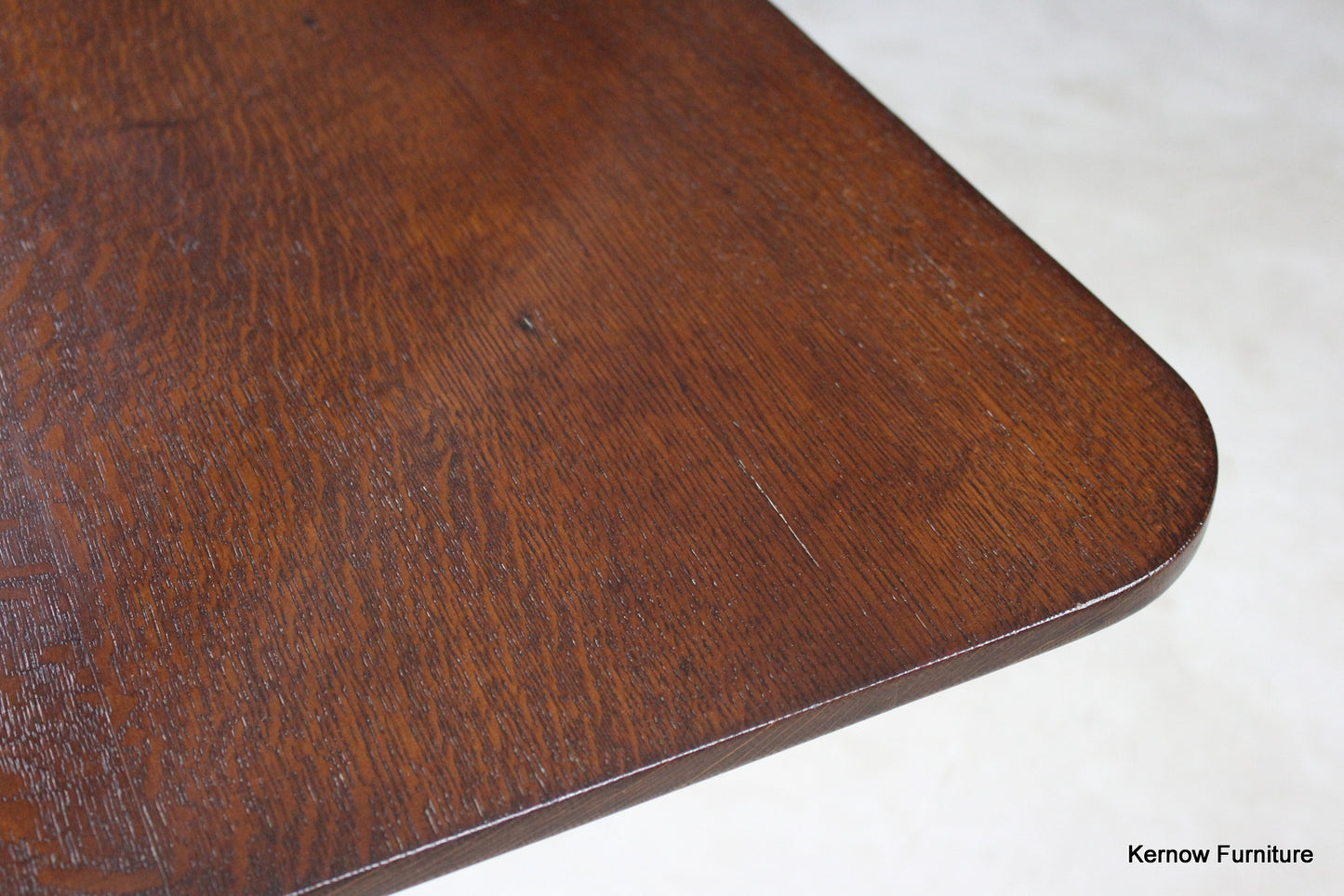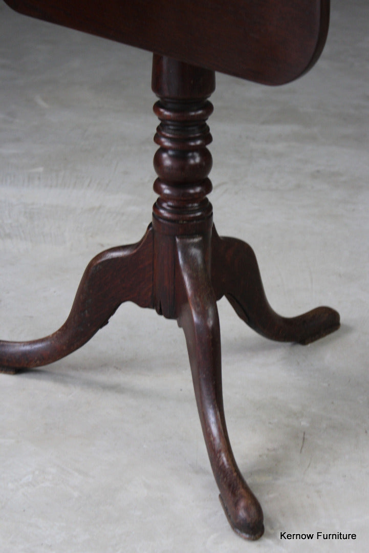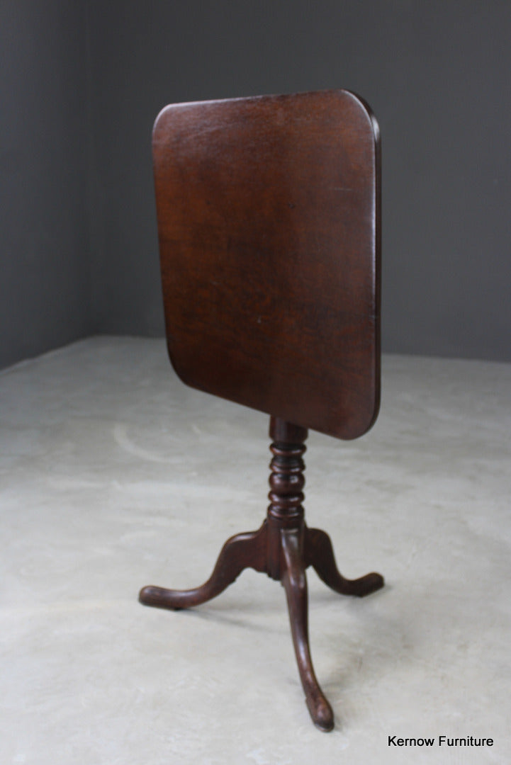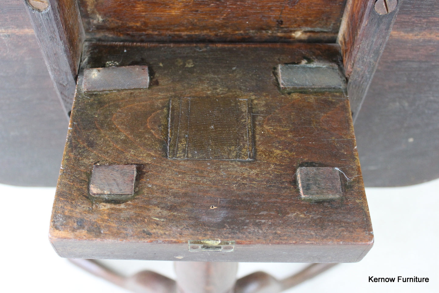 Square oak tilt top occasional table. Antique oak tilt top occasional table, square oak top with turned column on tripod base.