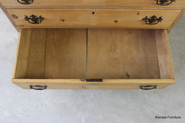 Stripped pine writing bureau. Rustic solid pine bureau with fall front, fitted interior, 4 long drawers on bracket feet.