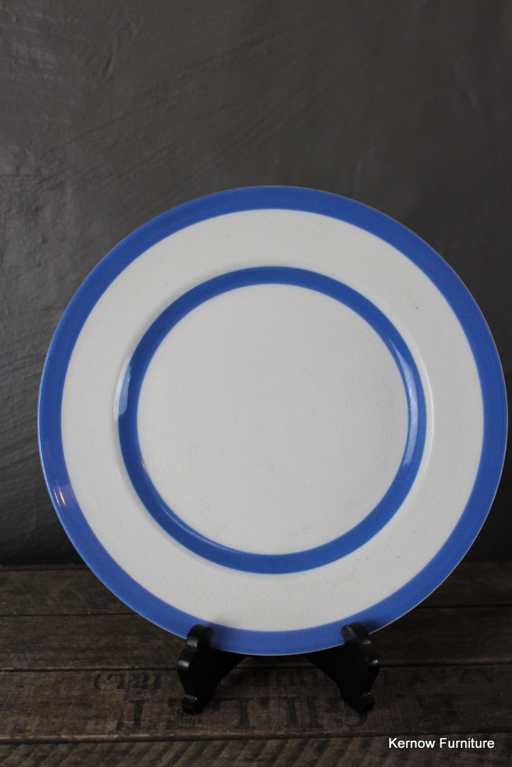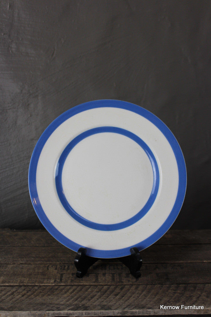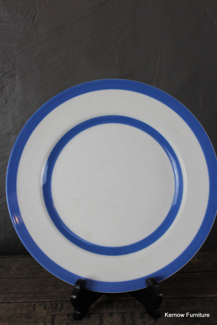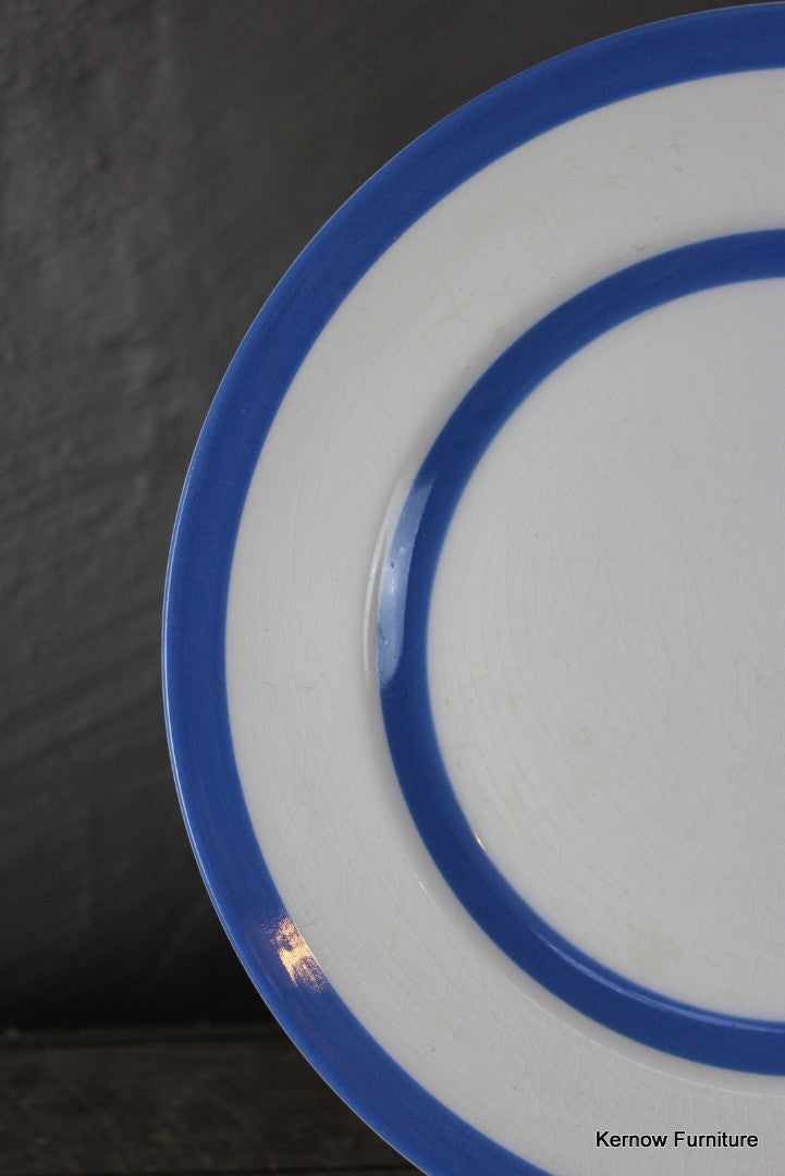T G Green dinner plate. Single blue & white striped Cornishware dinner plate.