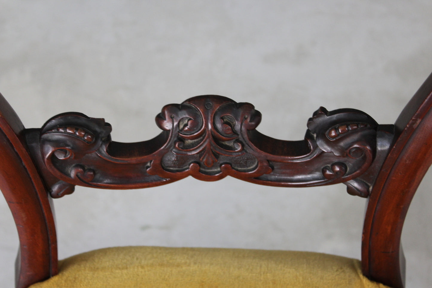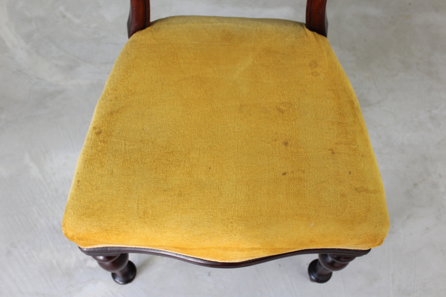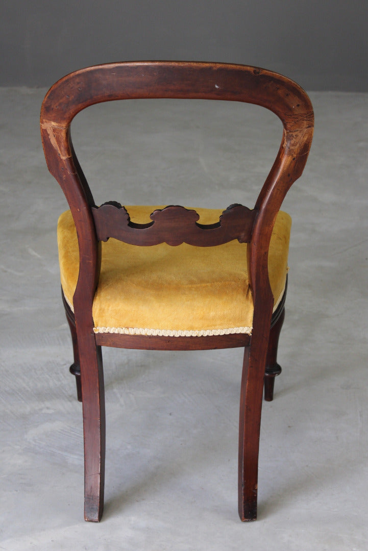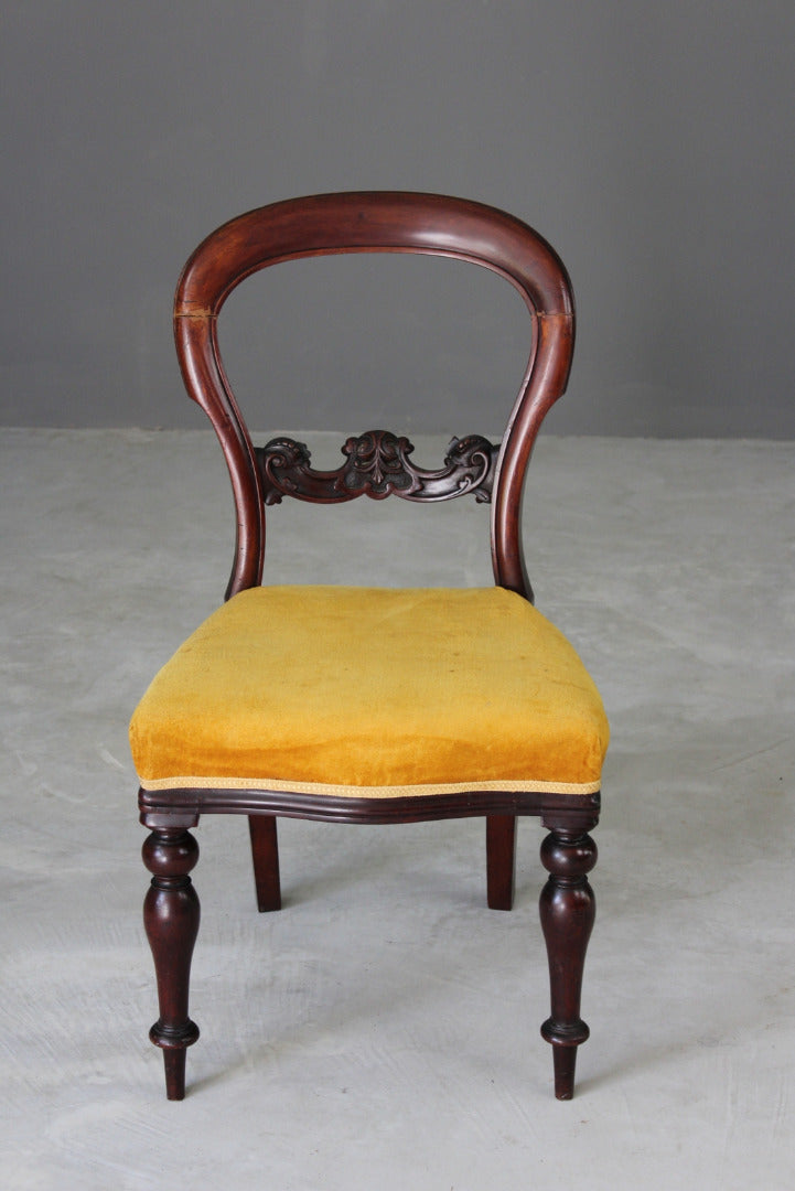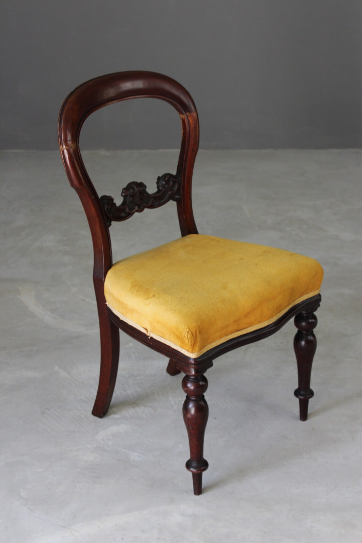 Victorian balloon back dining chair. Single antique Victorian mahogany dining chair with balloon back, webbed and uphosltered seat on turned legs.