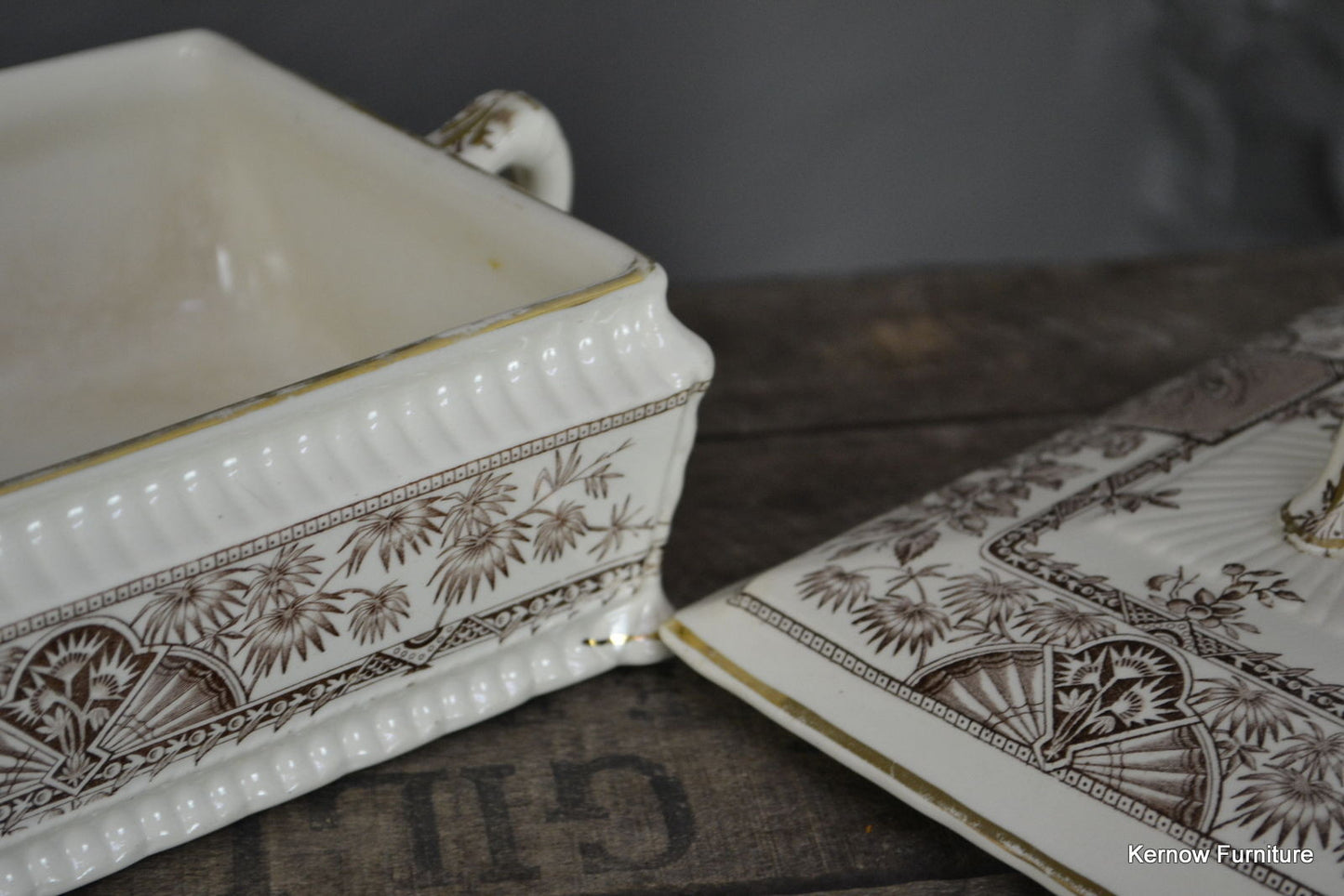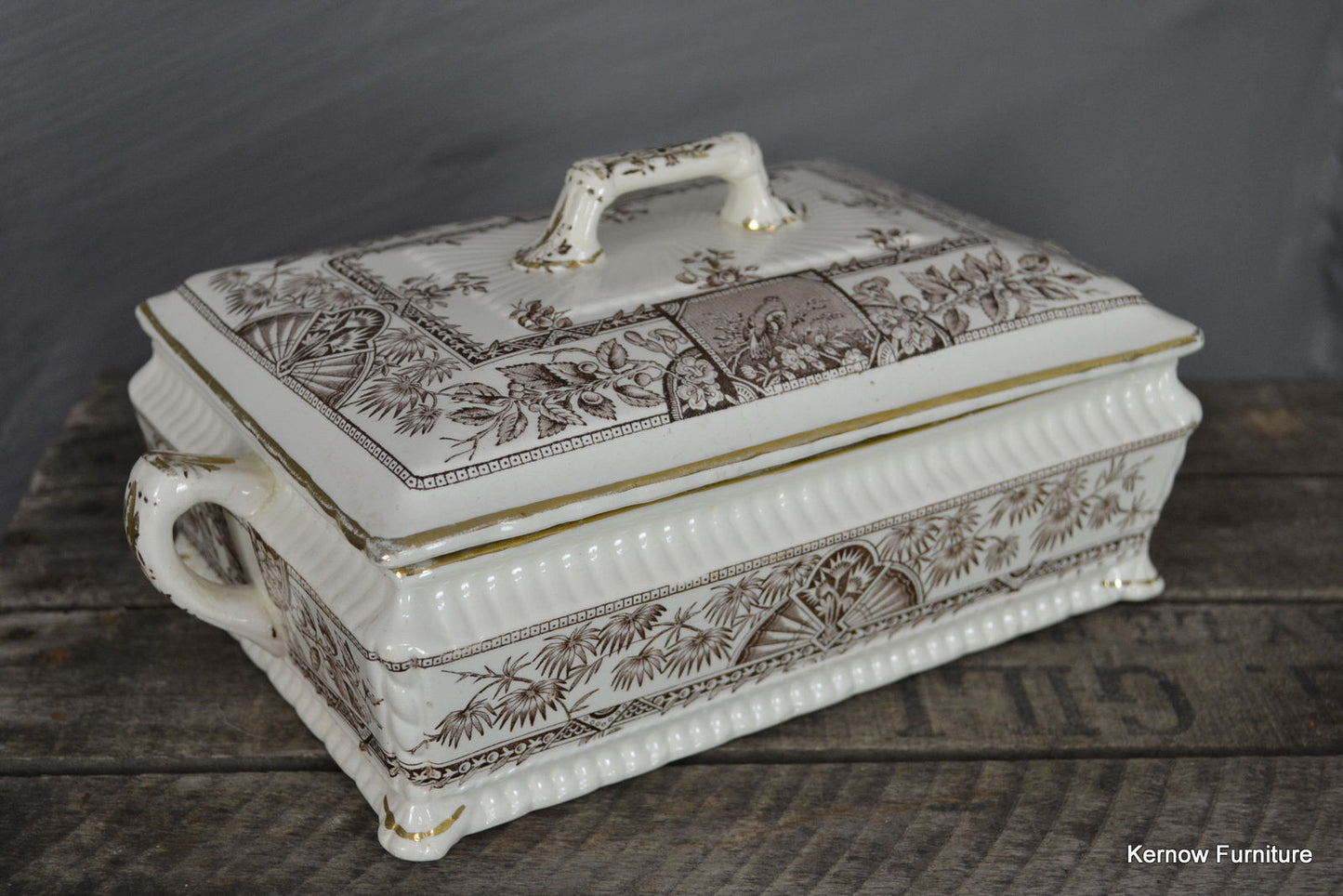 Victorian brown and white Alexandria serving tureen.