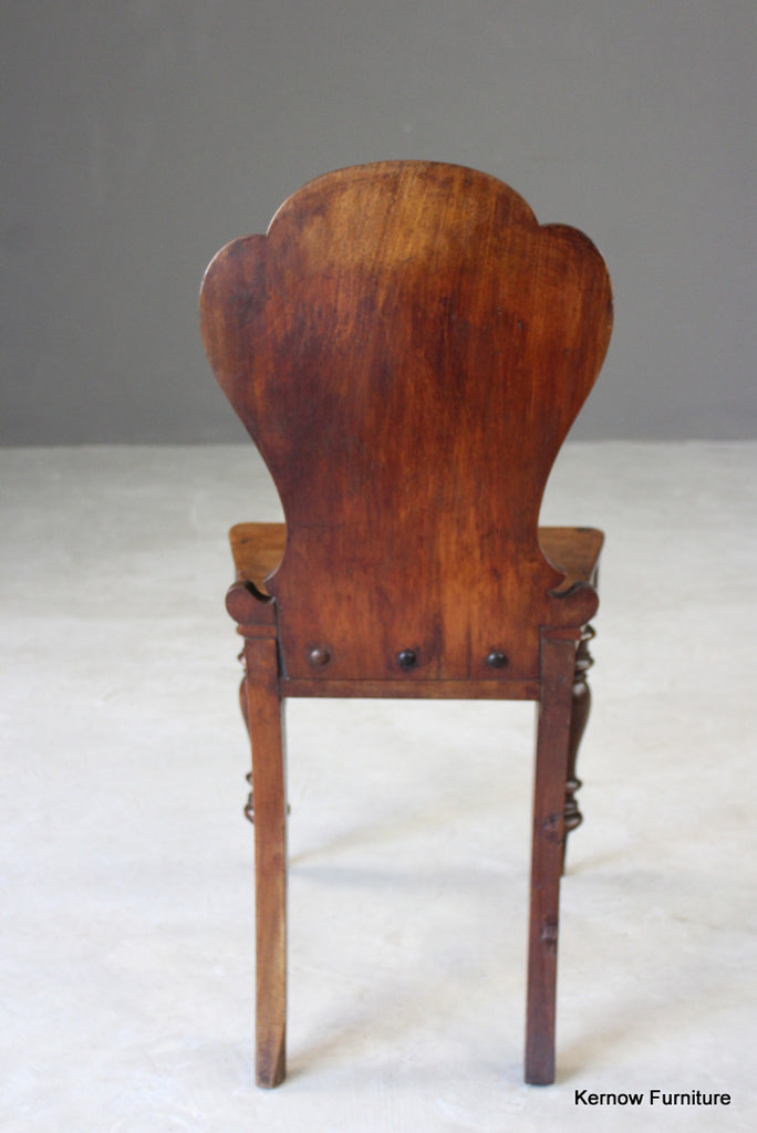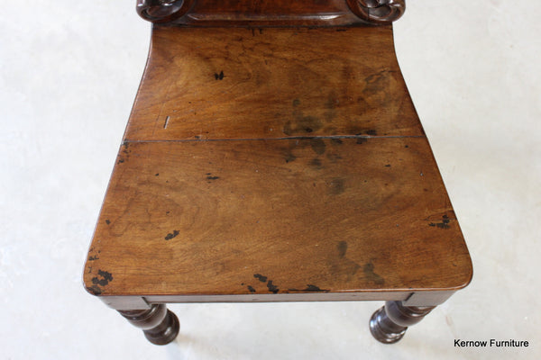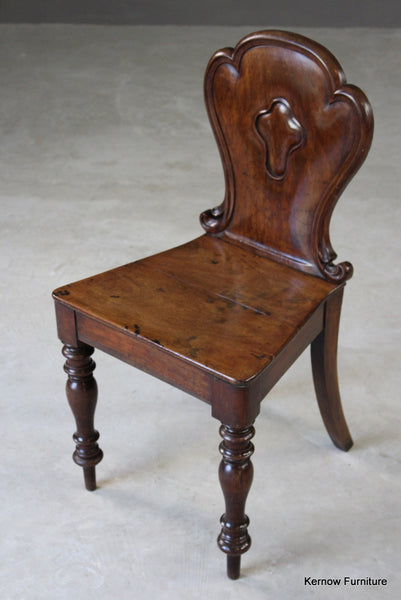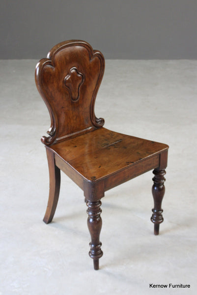 Victorian mahogany hall chair. Antique mahogany hall chair with shield back, solid seat on turned legs.