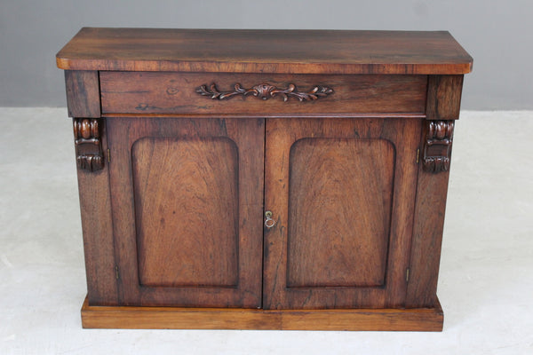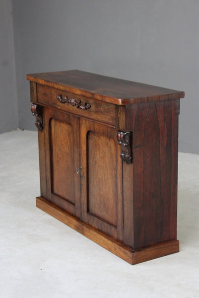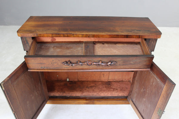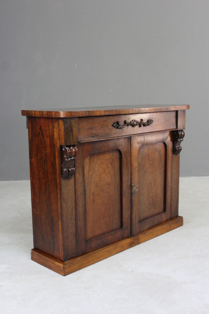 Victorian rosewood chiffonier. Antique 19th Century rosewood veneer chiffonier, single frieze drawer with cupboard below on plinth base.