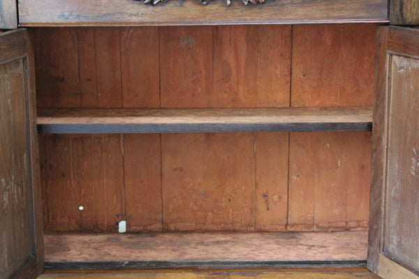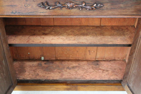 Condition: Overall good solid condition, age and wear to the finish, some minor chips and losses to the veneer, repairs to the drawer bottom, the edging bead on the door is missing, the unit originally had a back which has been removed.