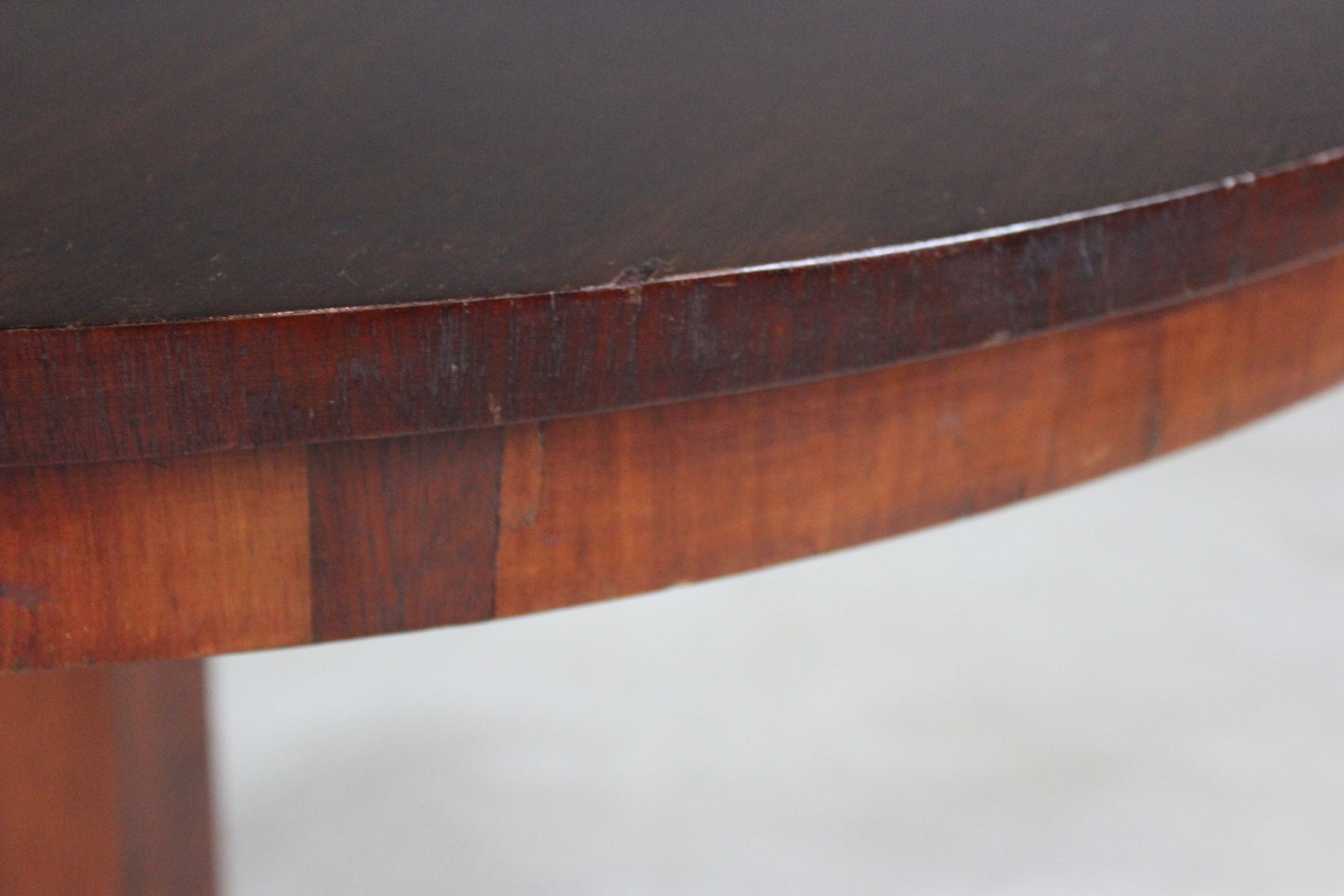 Condition: Overall good condition, some general age and wear to the top, few small chips and minor losses to the veneer, small amount of woodworm to the underside of the table - this has been treated as a precaution.