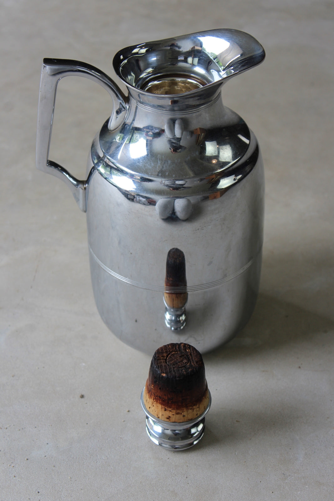 Vintage chrome thermos jug. Model 29Q, refill 29QF. Cork stopper