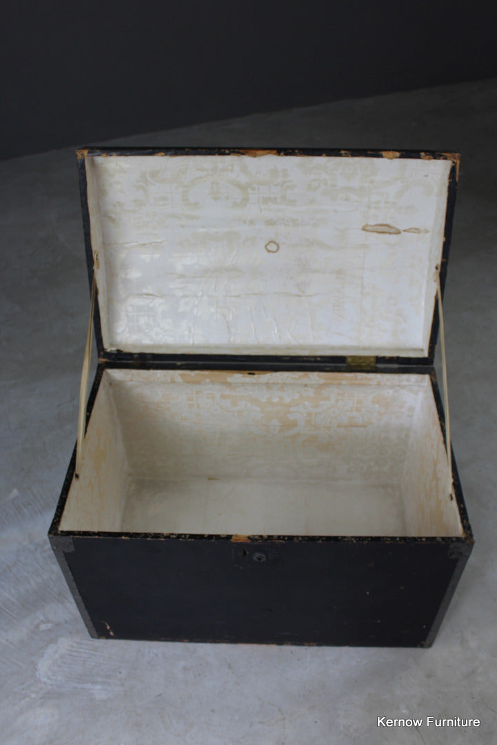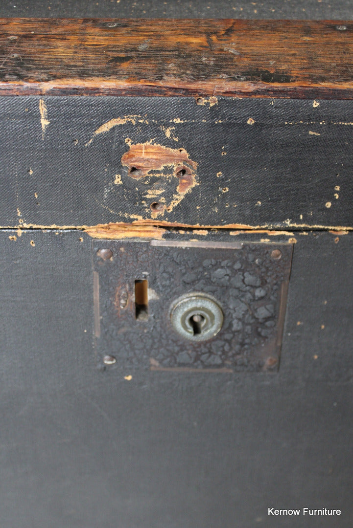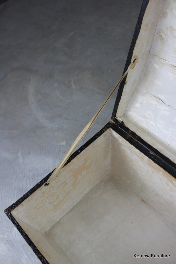Vintage dome lid trunk. Early 20th Century trunk with black fibre body & hinged lid.