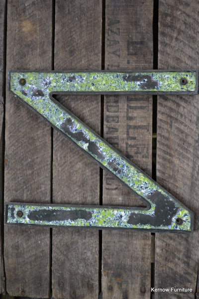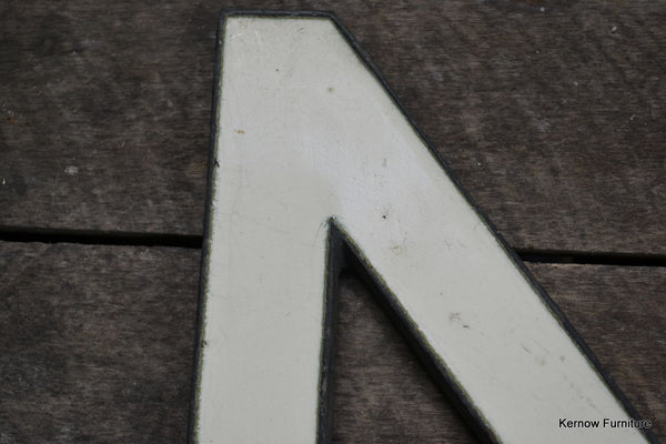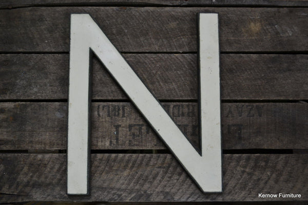 Single vintage early 20th Century individual cast brass & cream enamel shop sign letter - N