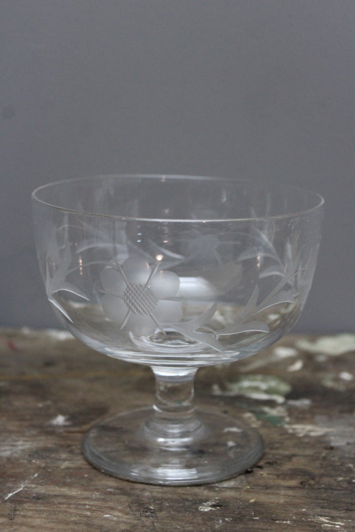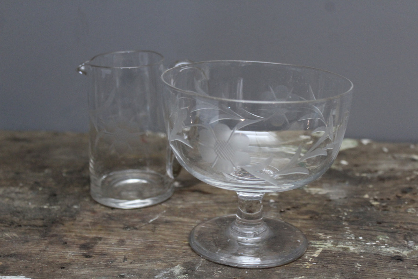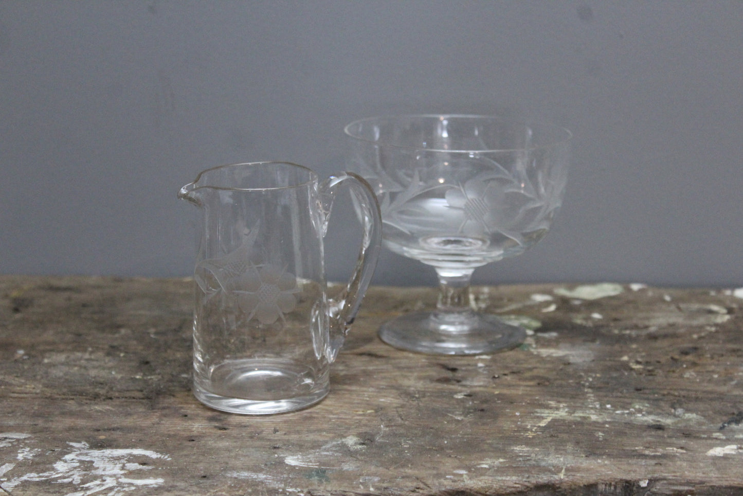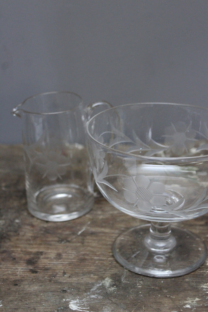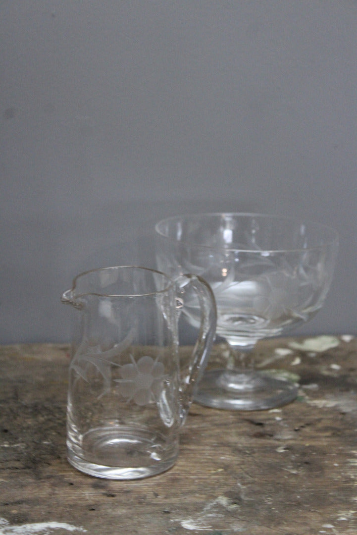 Vintage Etched Glass Jug & Stemmed Bowl
