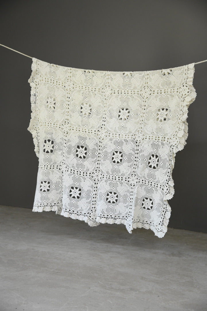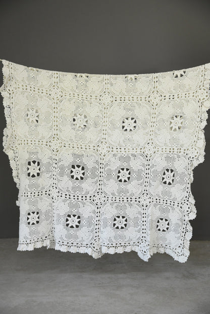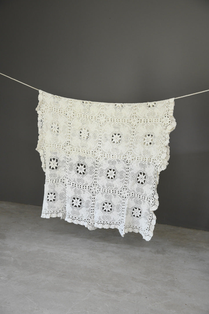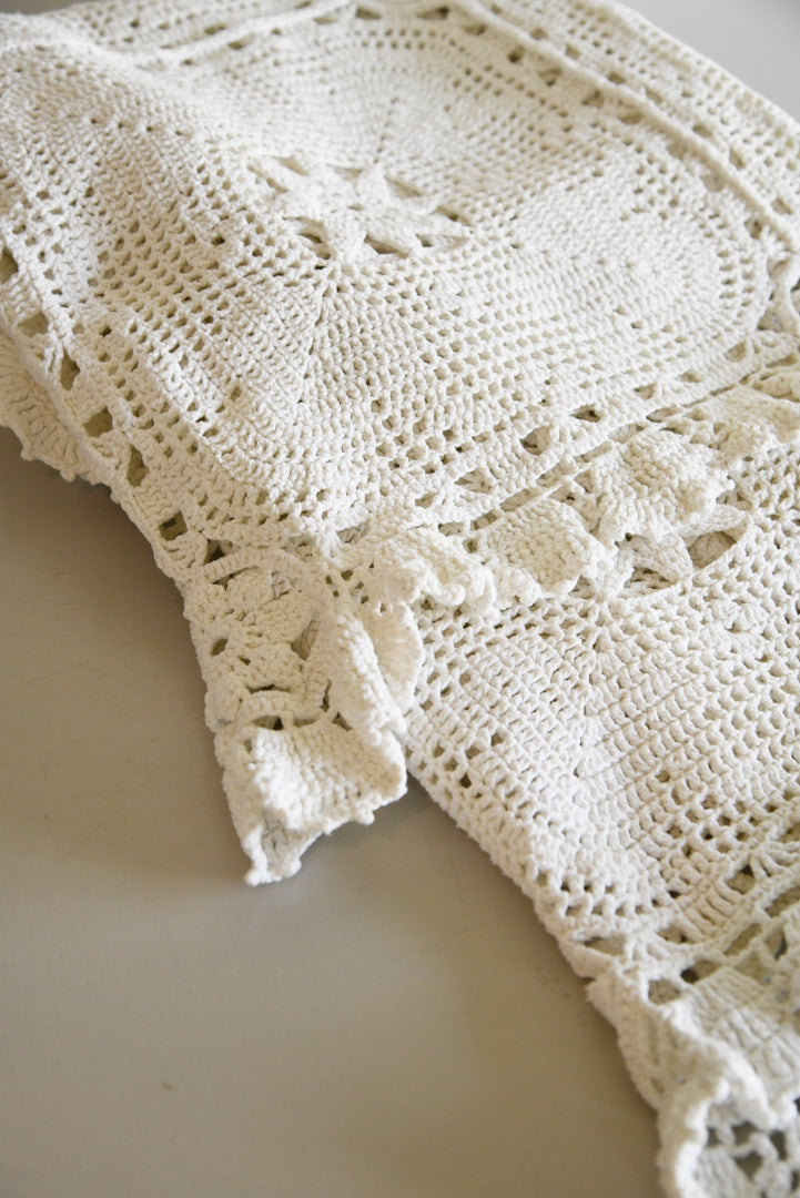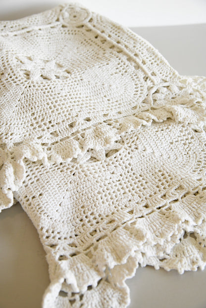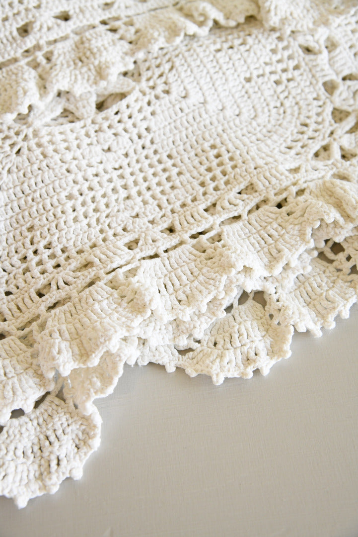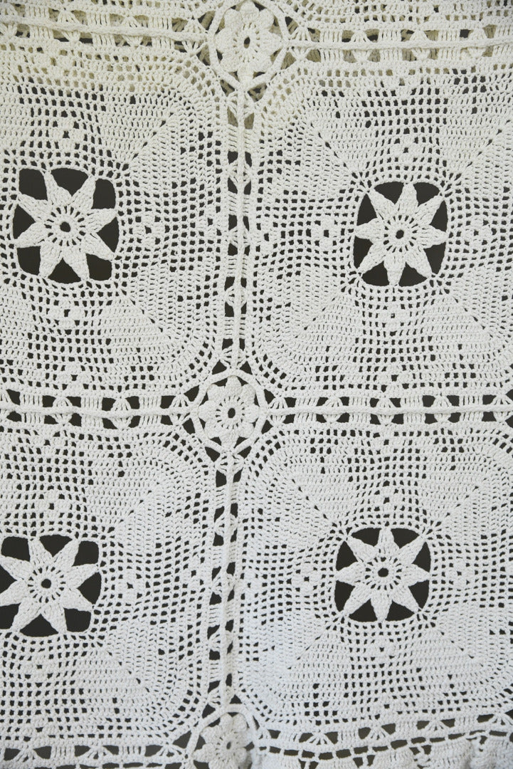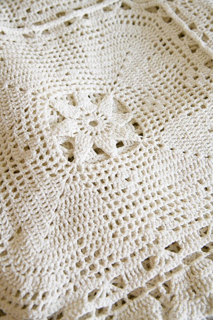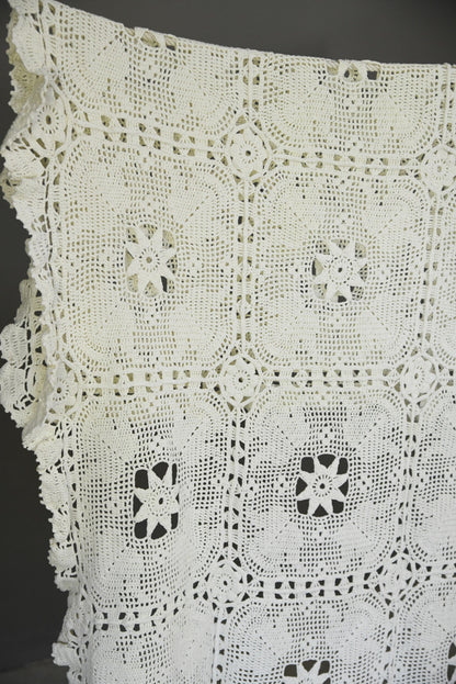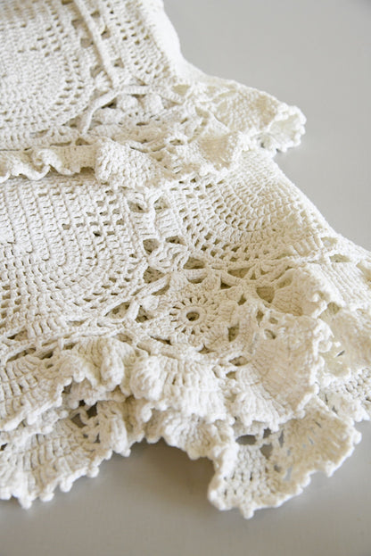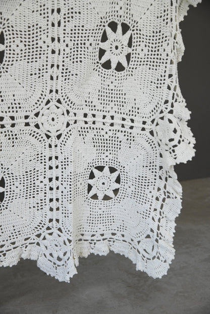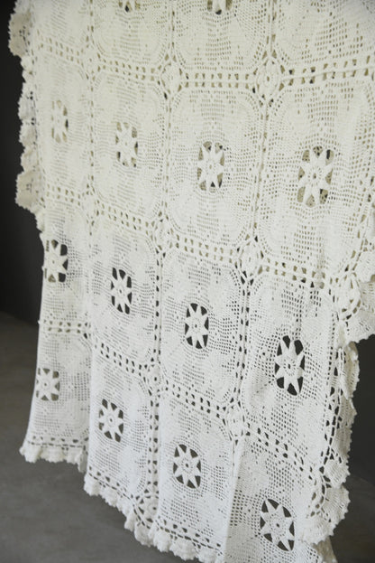 Vintage White Cotton Crochet Bedspread