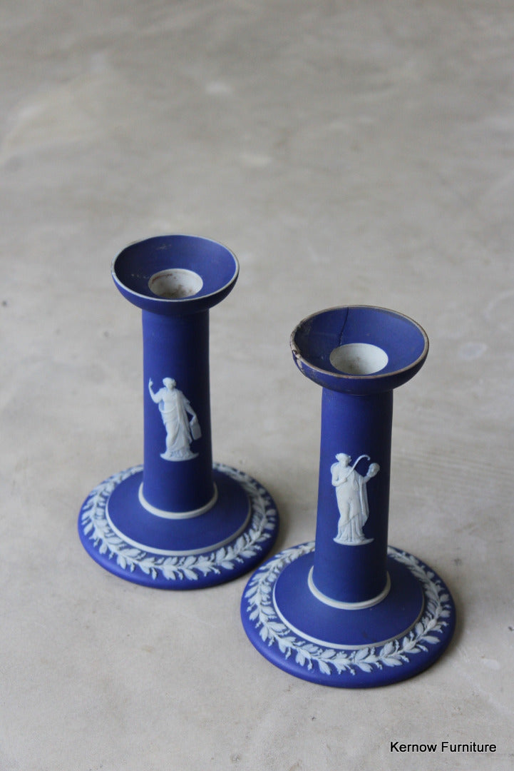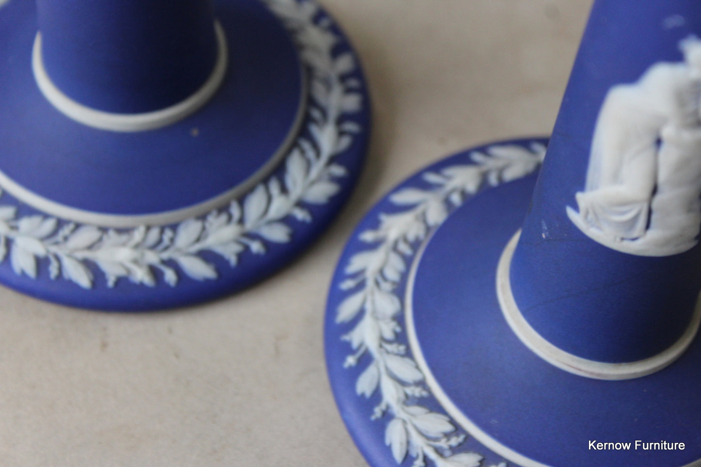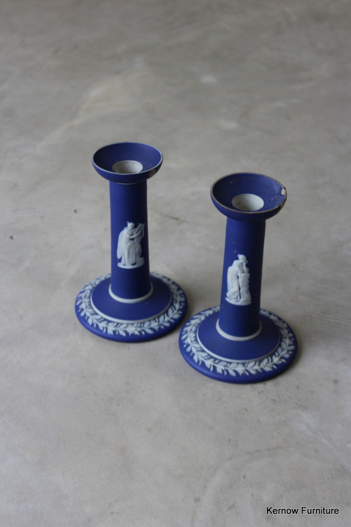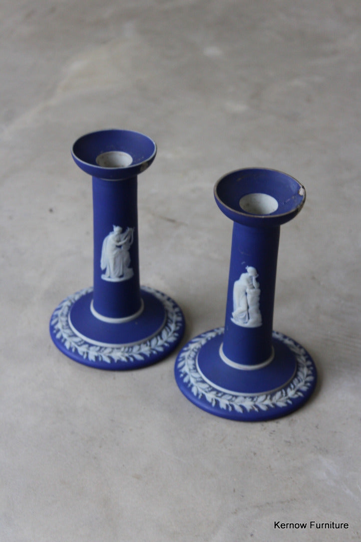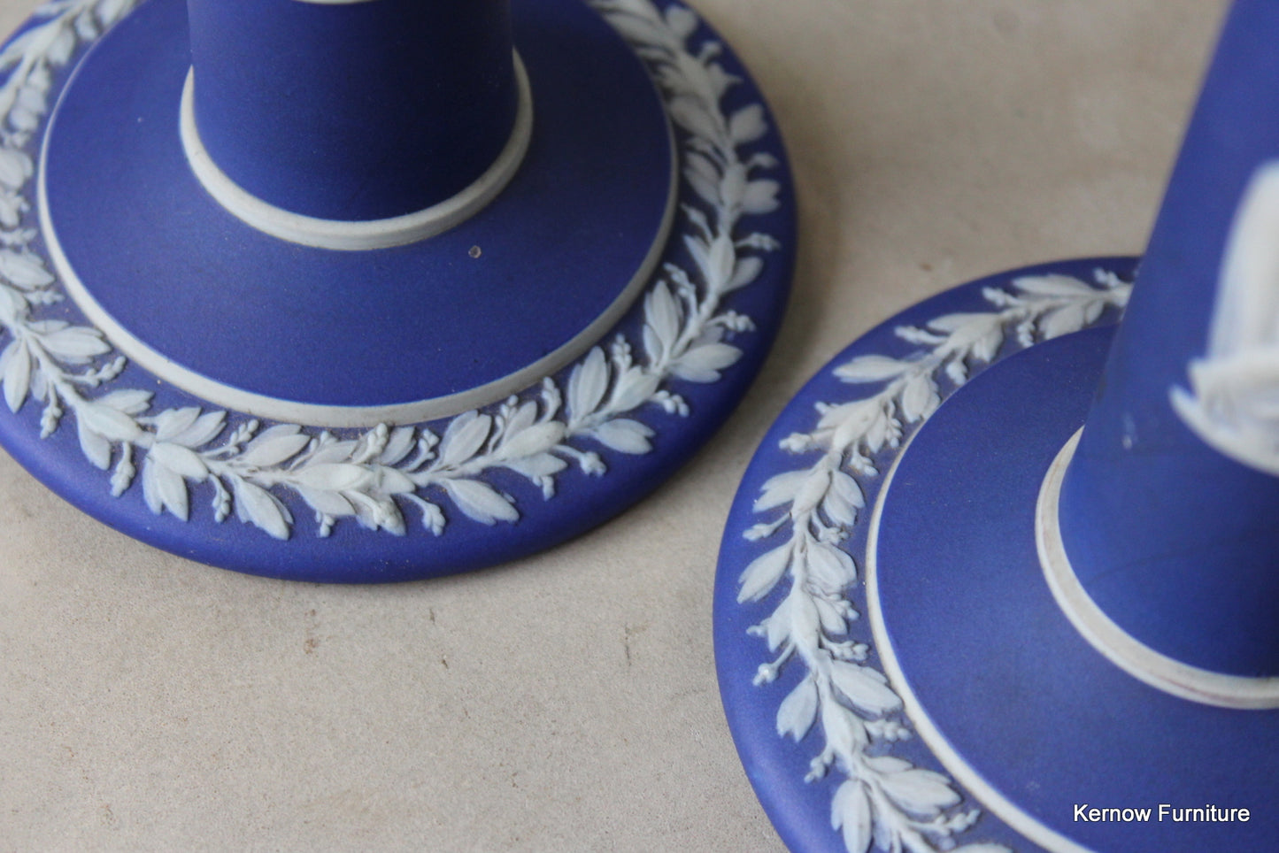Wedgwood Cobalt Blue Jasperware Candlesticks