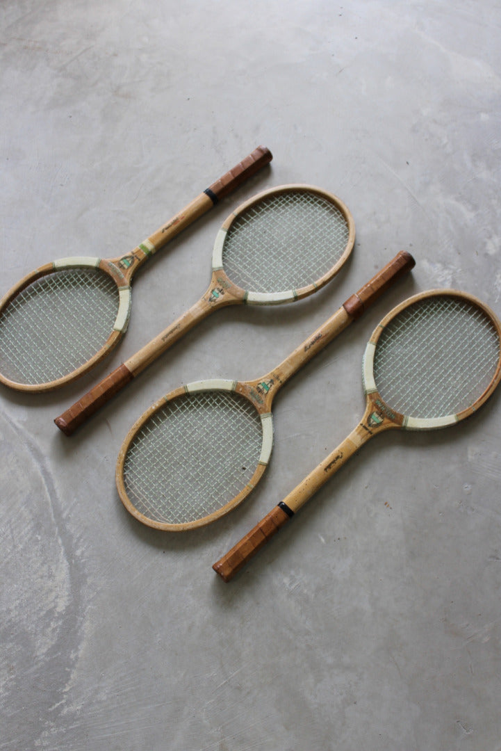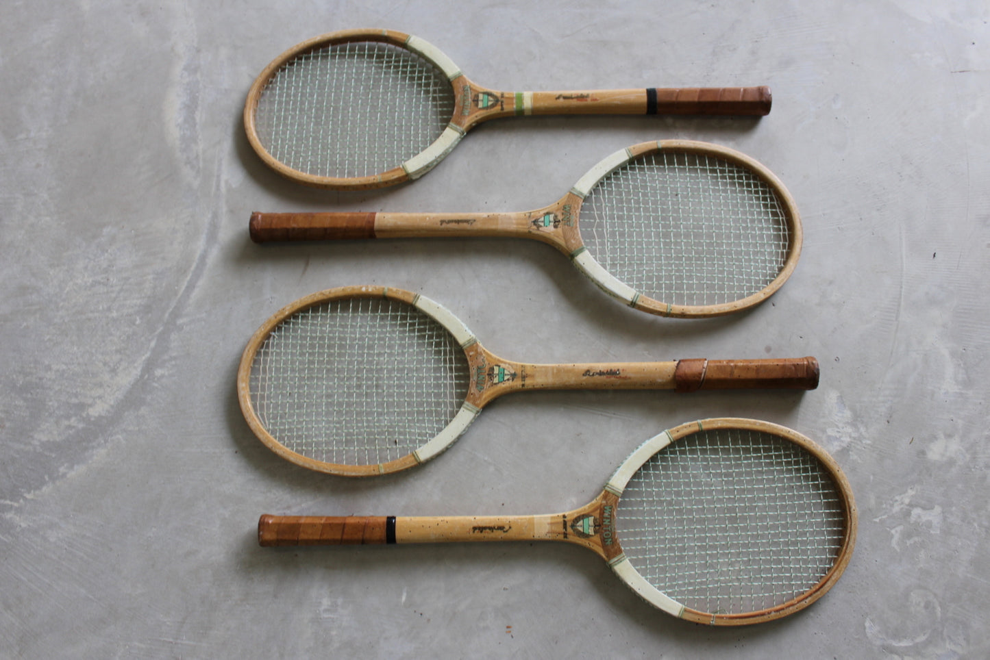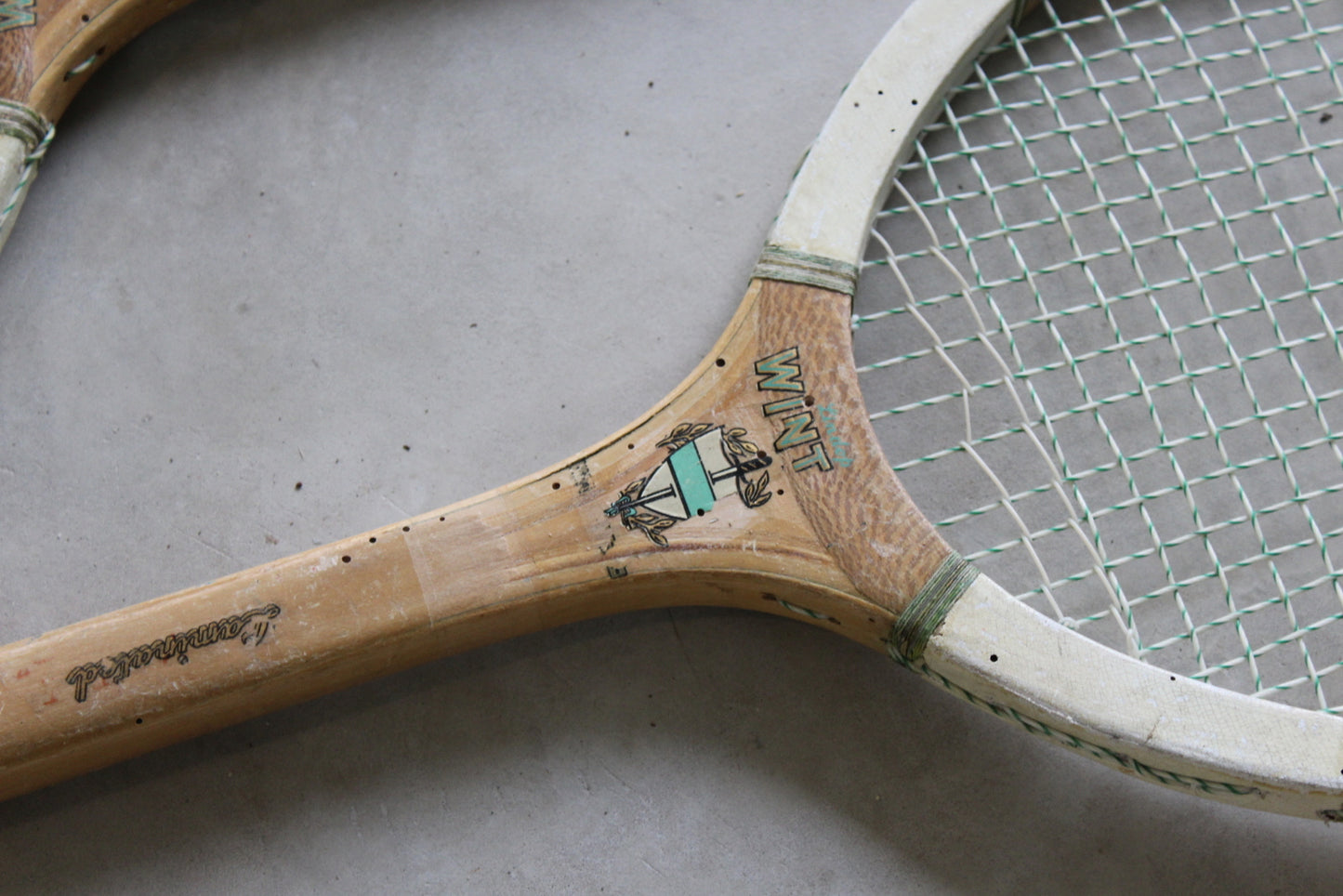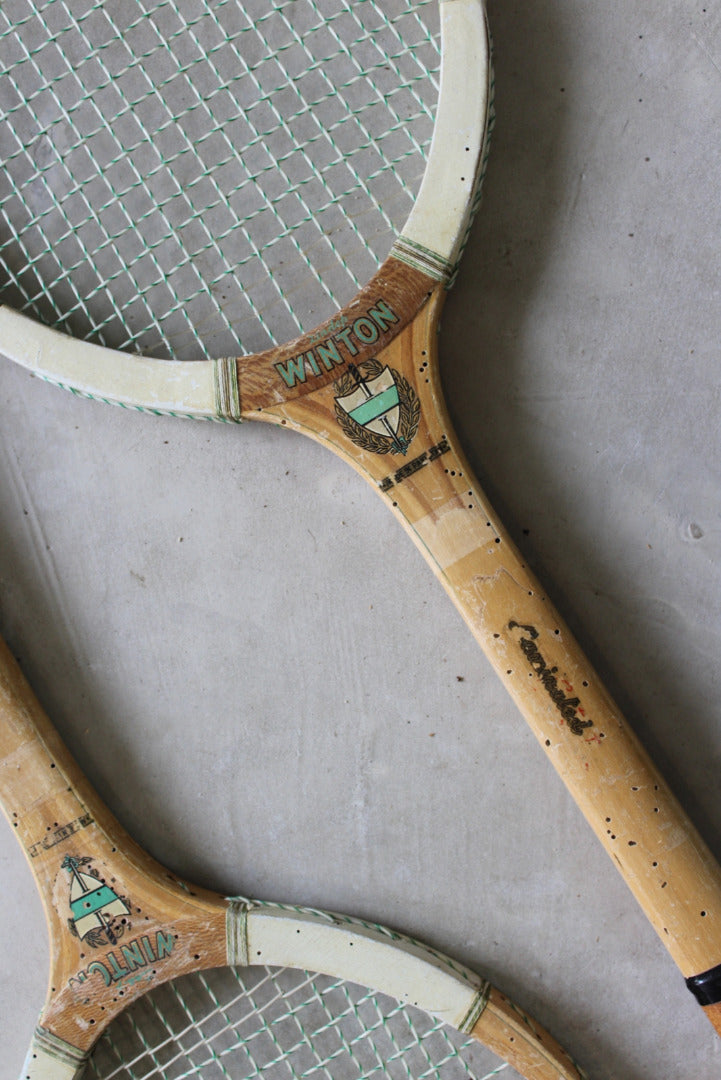 Winton vintage badminton rackets. 4 vintage wooden badminotn rackets with leather handle.