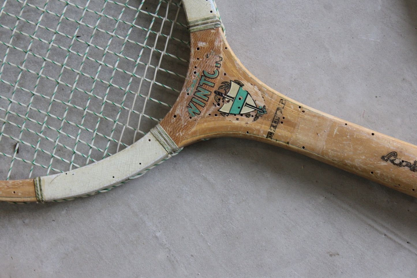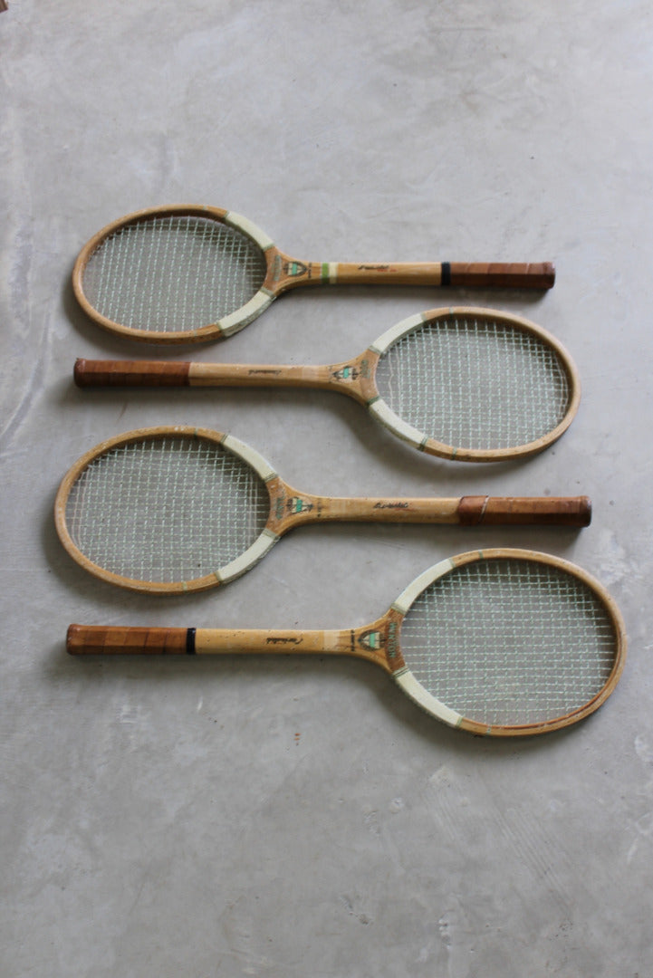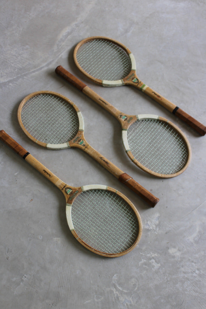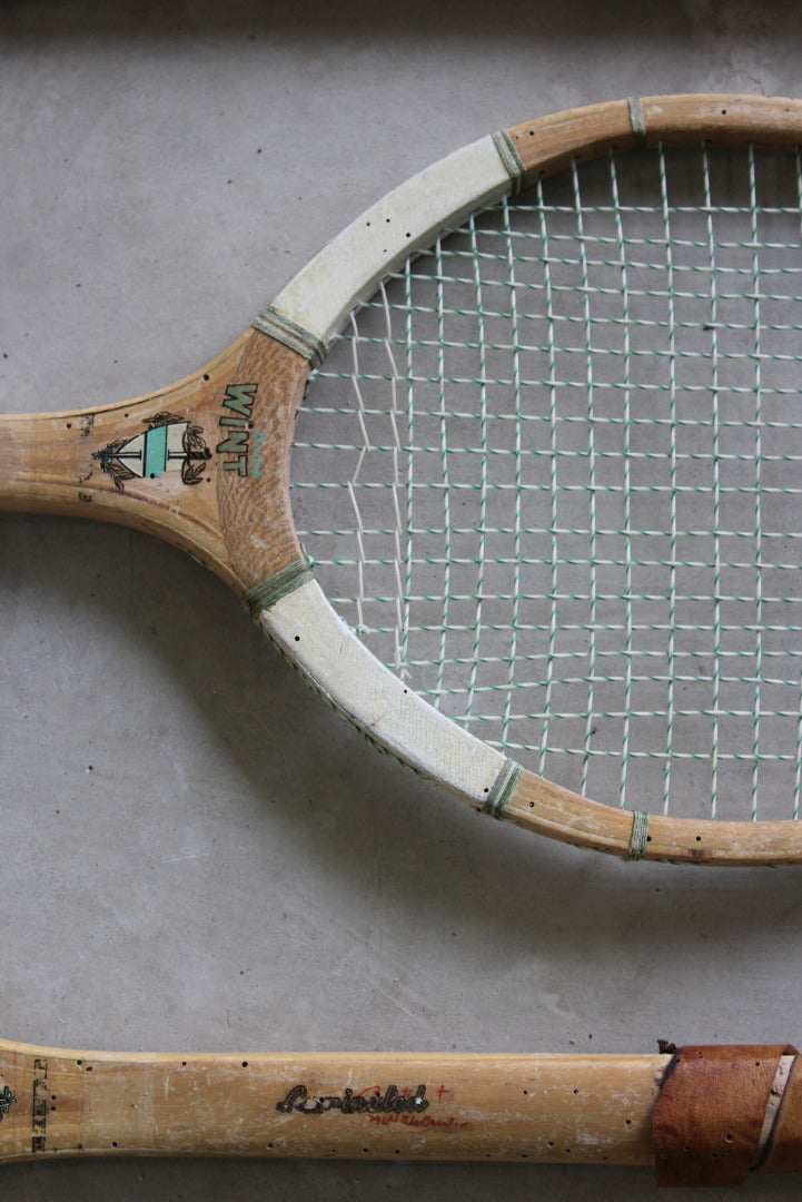 Winton vintage badminton rackets. 4 vintage wooden badminotn rackets with leather handle.